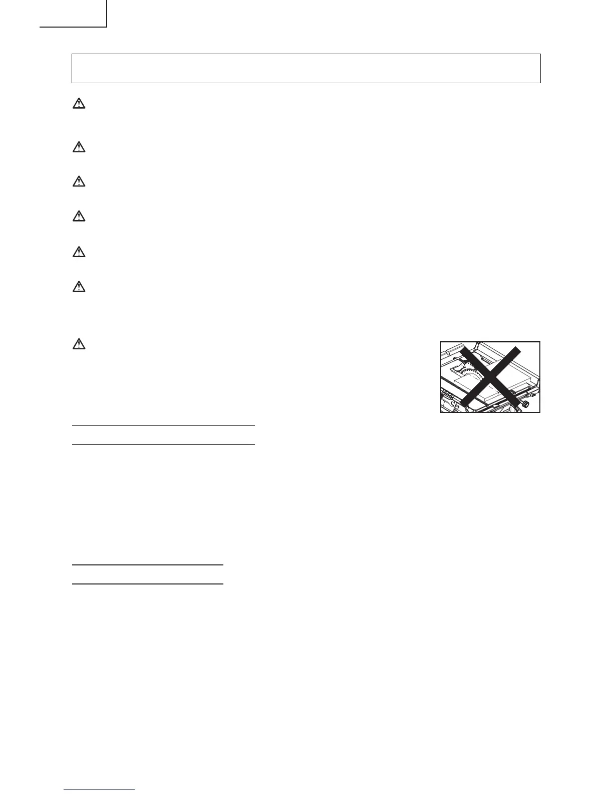 WARNING: In the event of a power failure or when the tool is not in use, turn the switch OFF. This