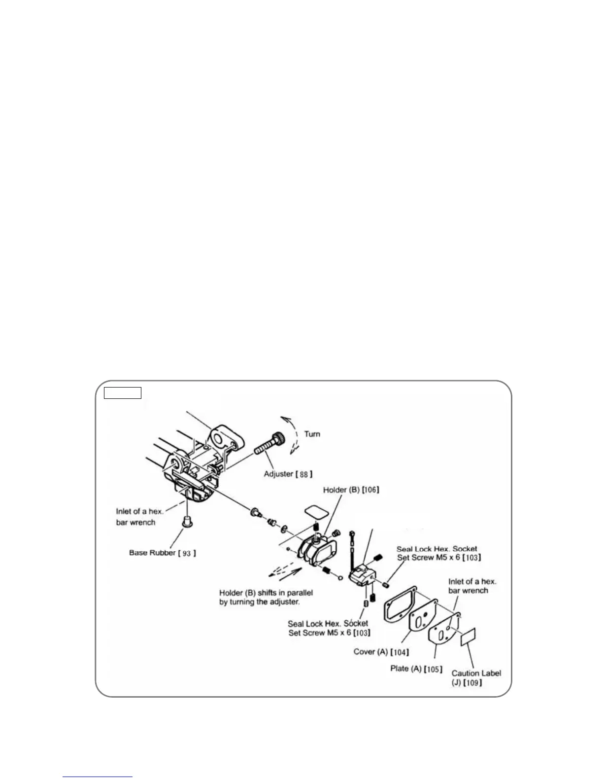 The Adjuster [88] located at the side of Hinge (A) Ass’y [87] is a screw used for moving the