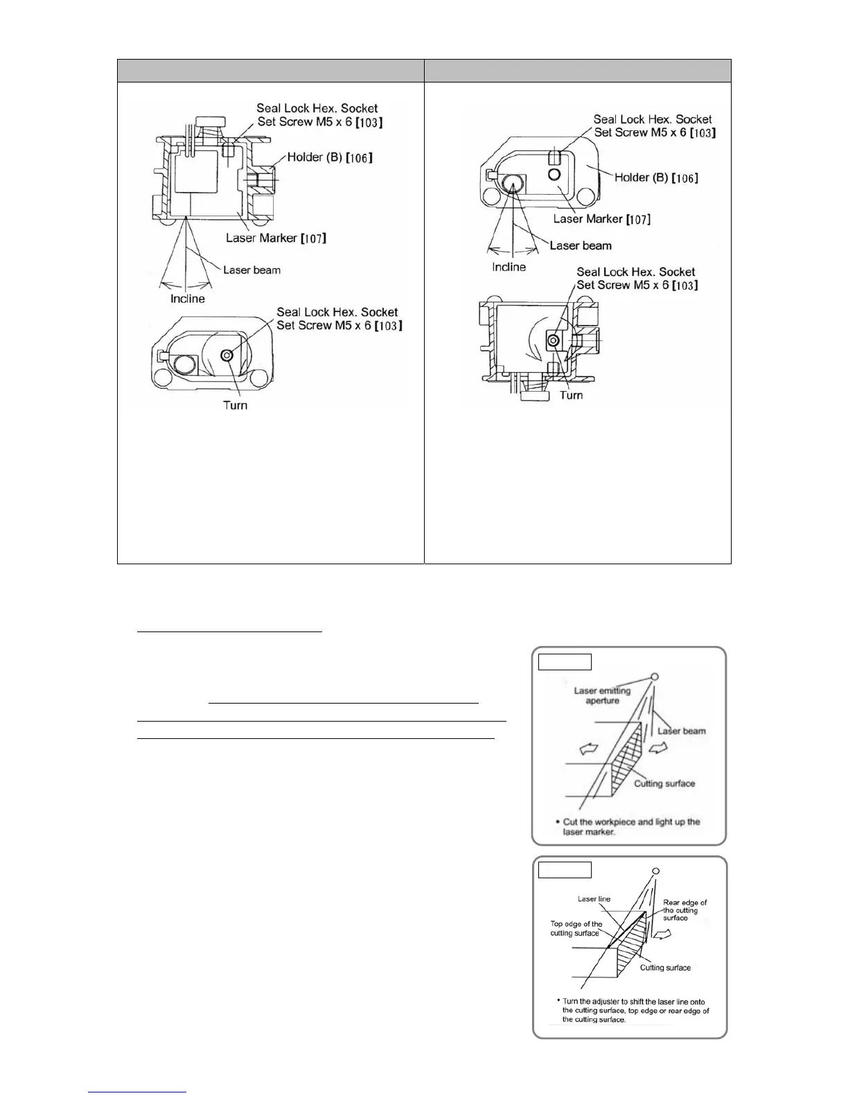 adjustment of the Laser Marker [107] using a 2.5-mm hex. bar