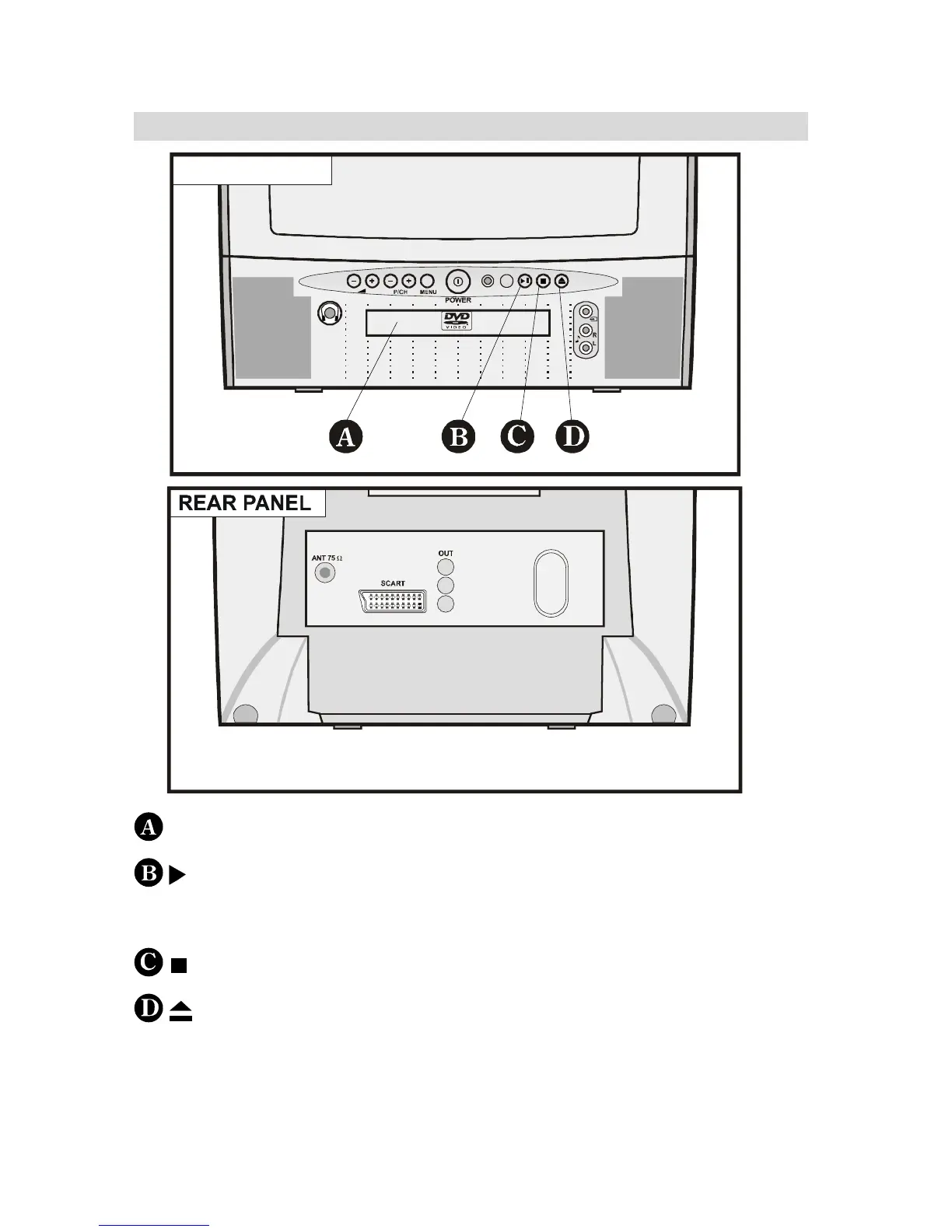 DVD Control Panel Buttons and Rear Panel
