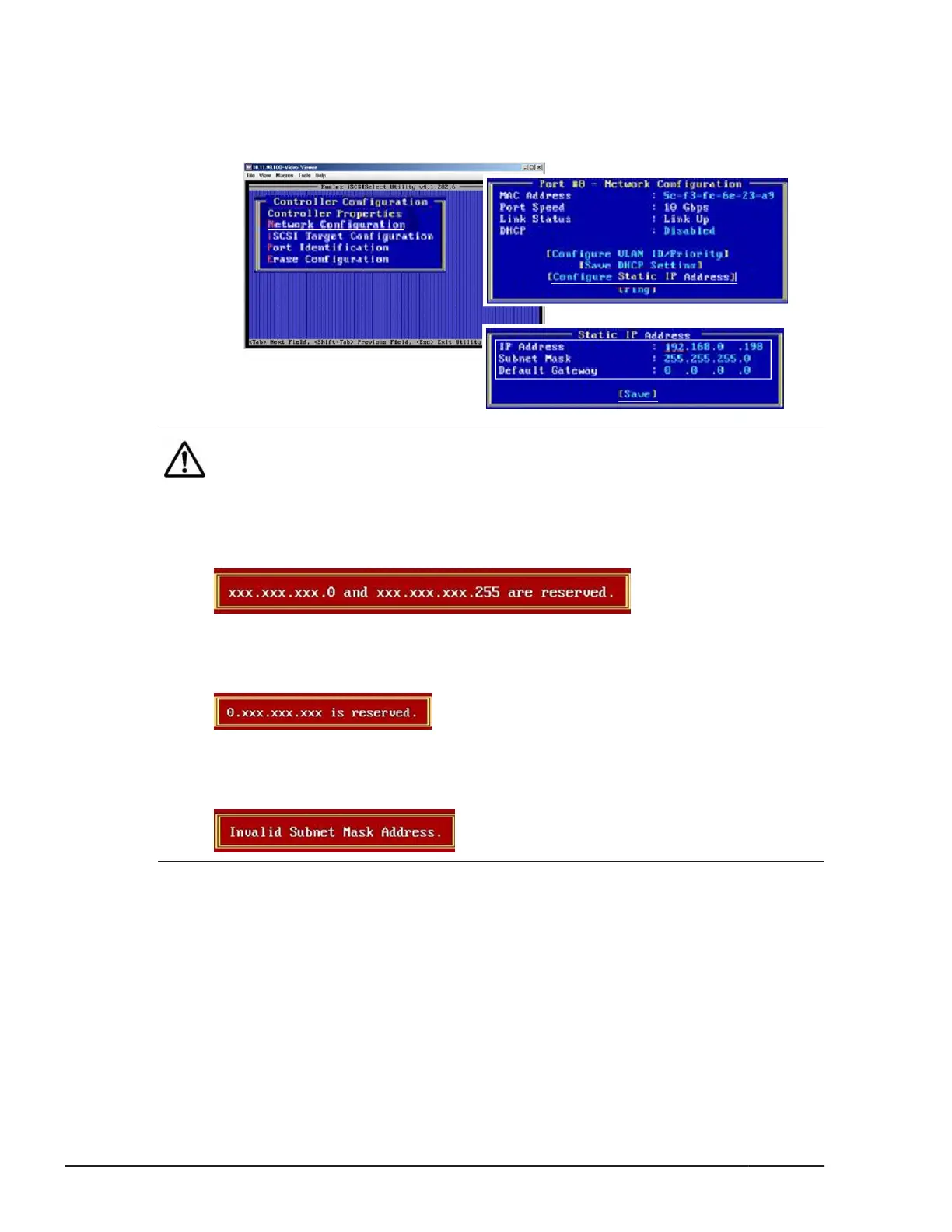Address or Default Gateway Address is set to 0, the cursor is moved