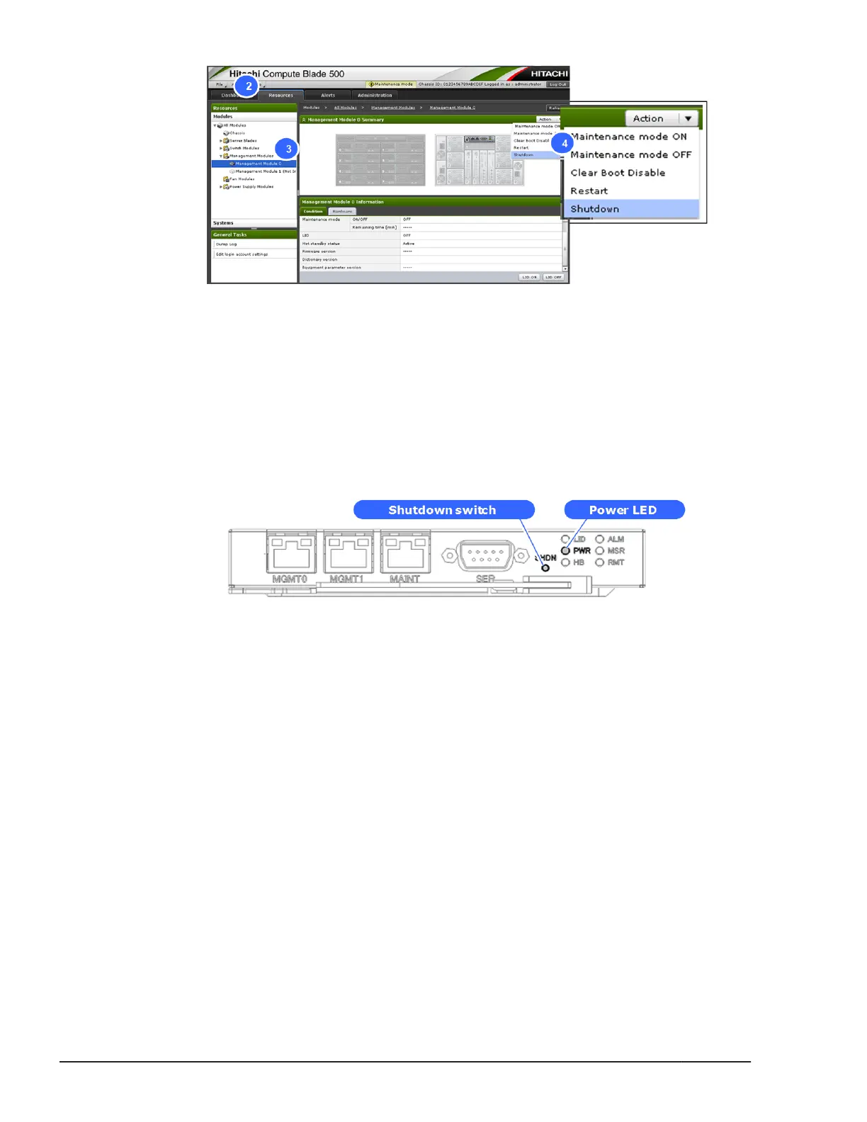 2. Press and hold the Shutdown switch until Power LED turns to light in