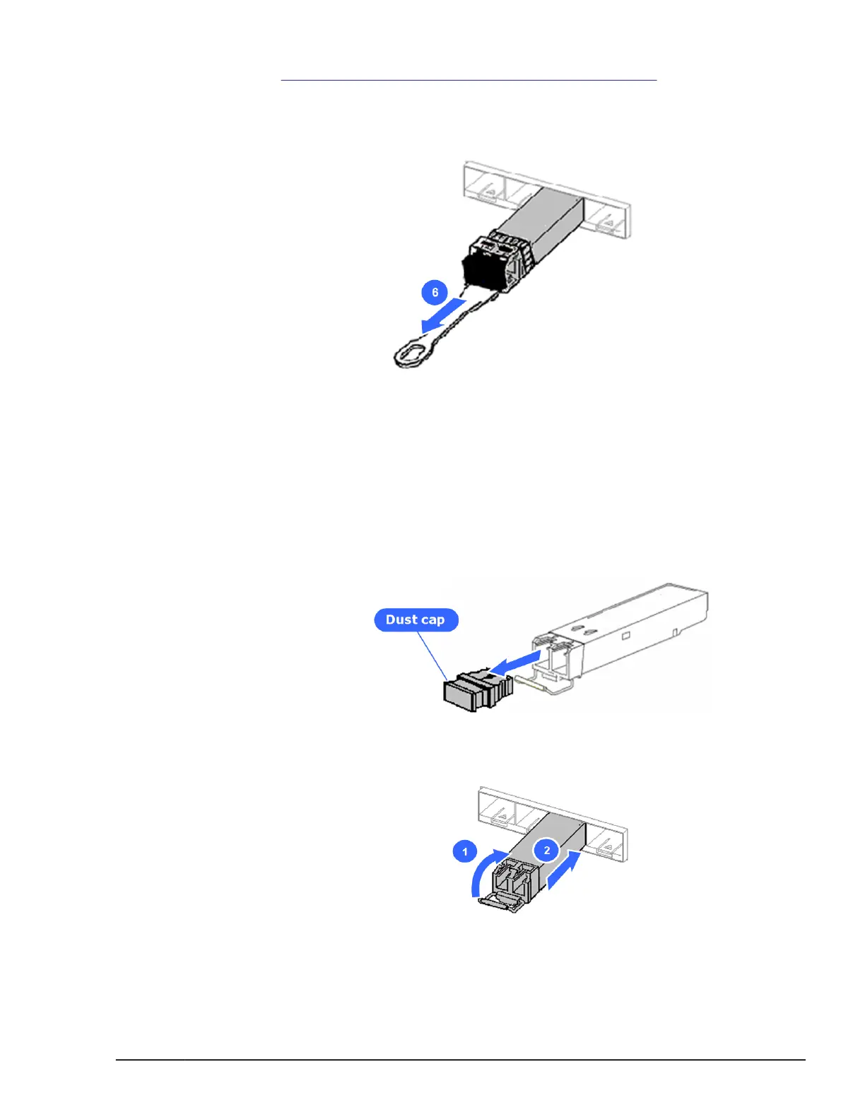 2. If the dust cap is put in the spare SFP+ module as shown in the following