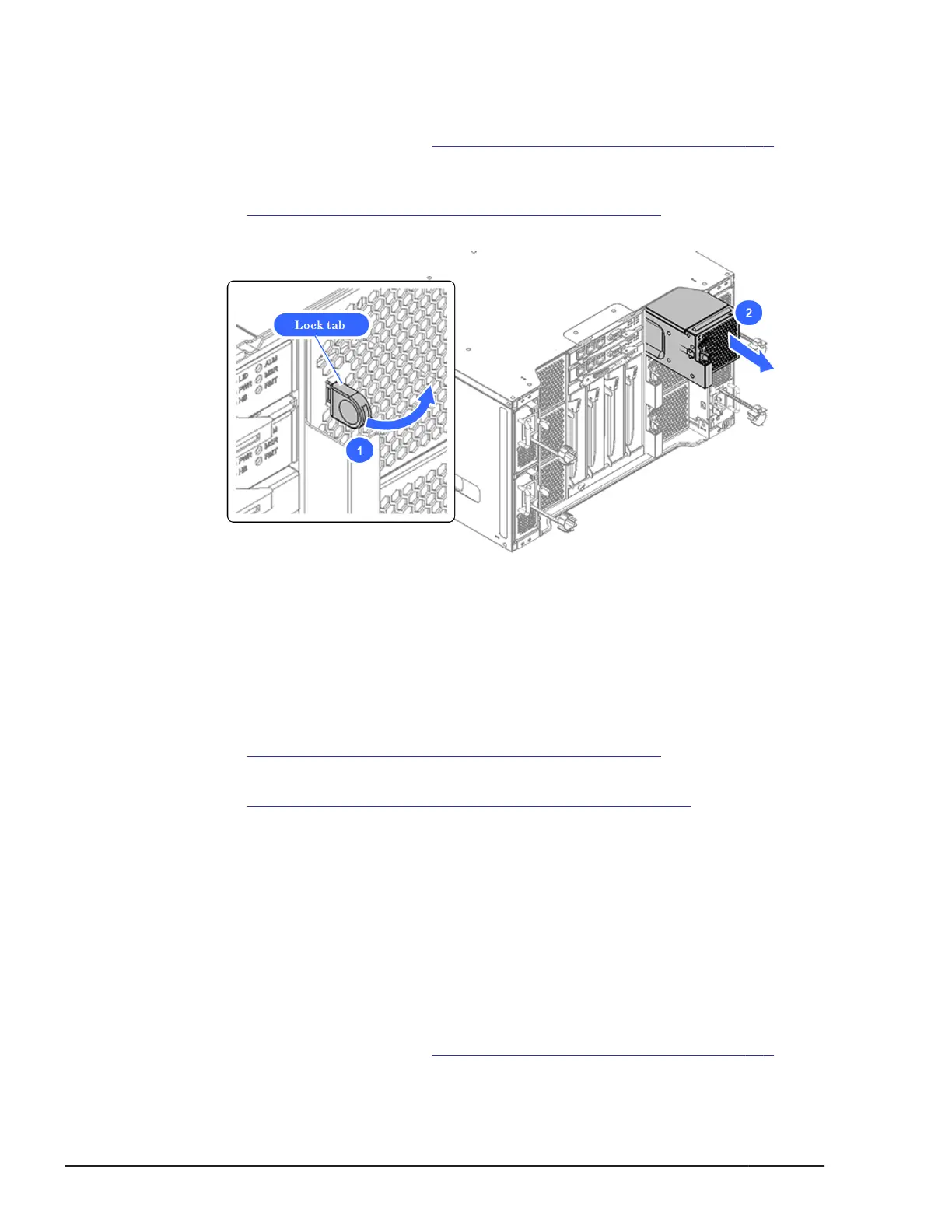 4. Pull the lock tab while unlocking it and then remove the failed fan module.