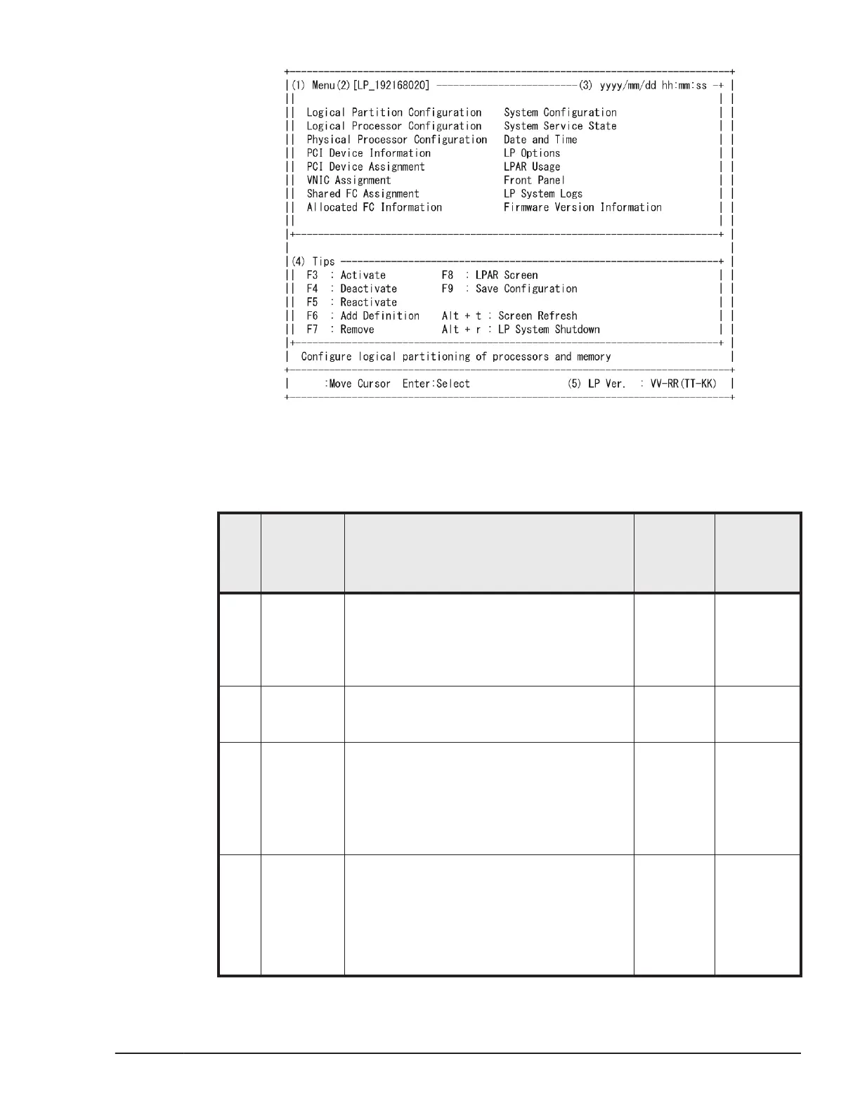 Table 7-4 Details of the LPAR manager Menu Main Screen