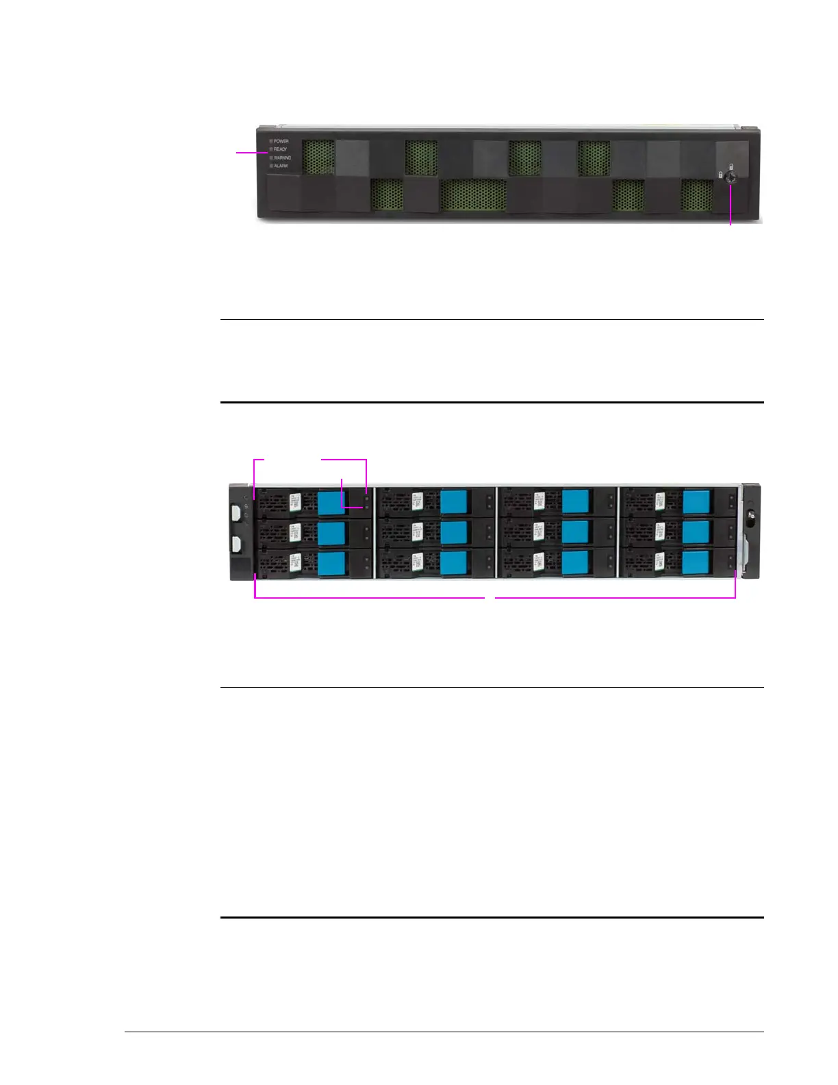 Drive display LED above each drive slot. See Table 2-7 on page 2-30.
