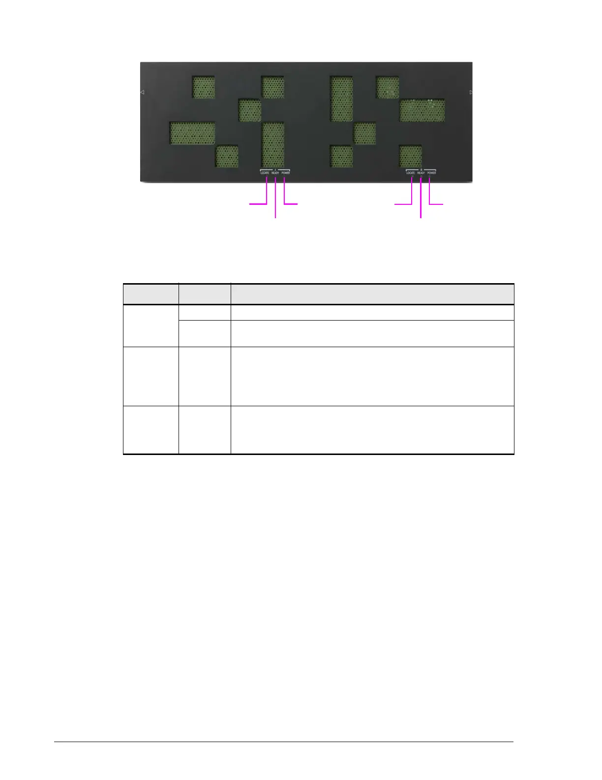 READY Green ON = normal operation. Storage system is operational.