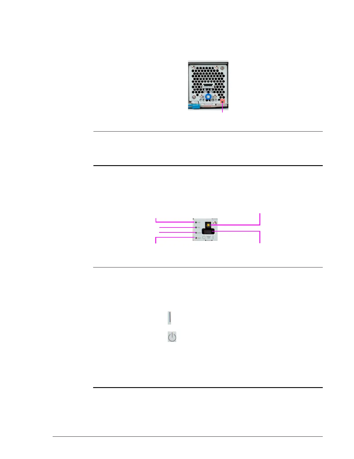 PWR LED Green ON = storage system is receiving AC power.