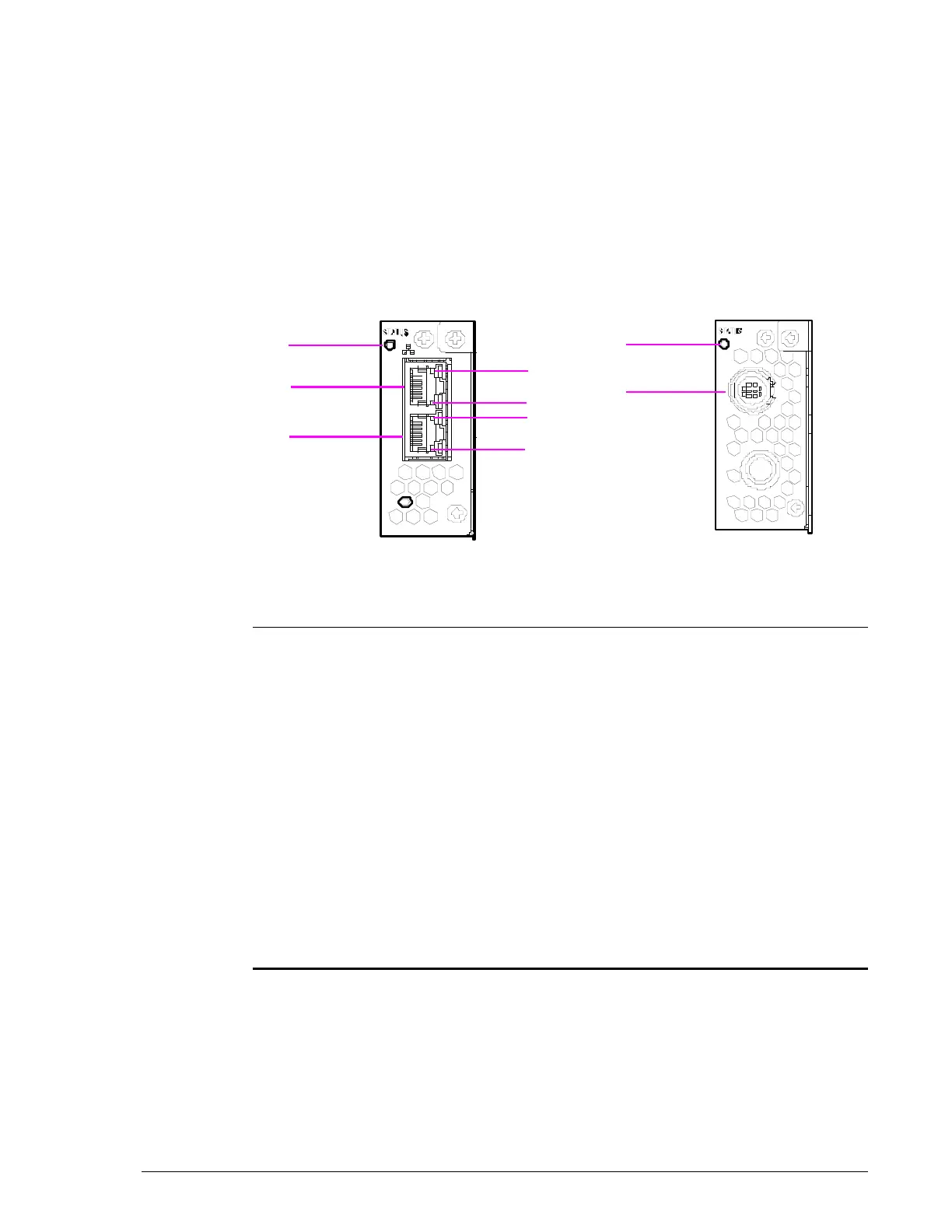 • The left module has a status LED, management port, and maintenance