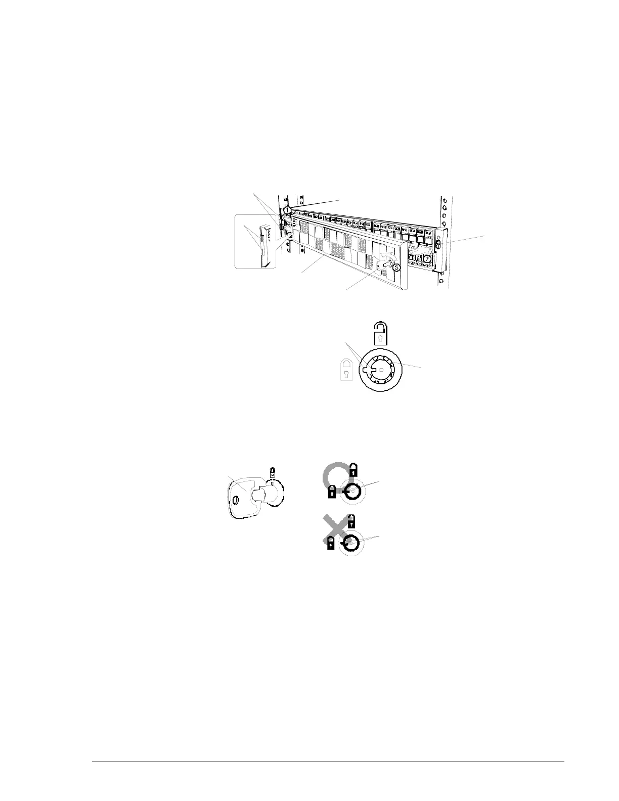 1. Use the supplied key to unlock the front bezel. Hold the key and the