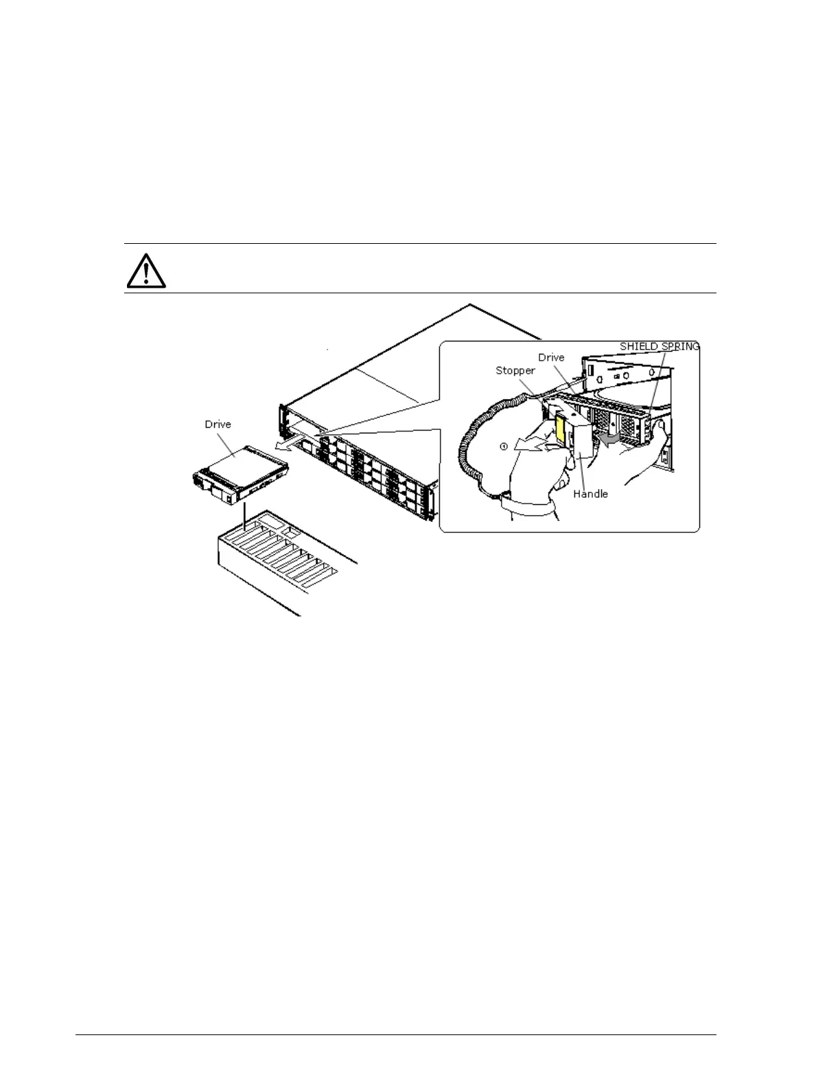 NOTE: Hold the drive by the rail side because the shield spring is subject