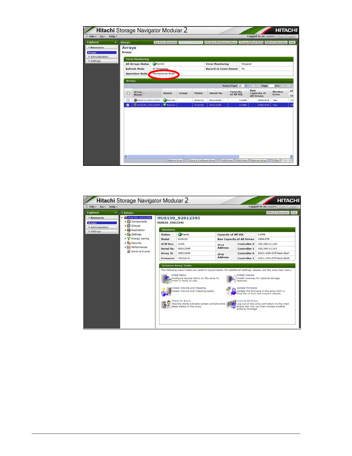4. Under the Array Name column, click the name of the Hitachi Unified