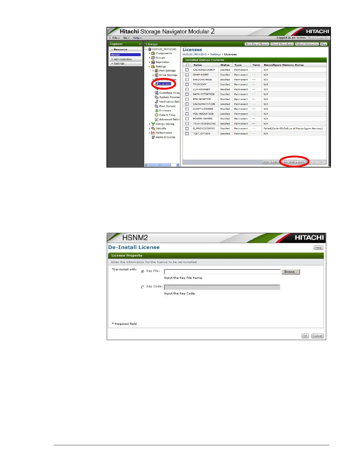 7. At the De-Install License page, perform one of the following steps: