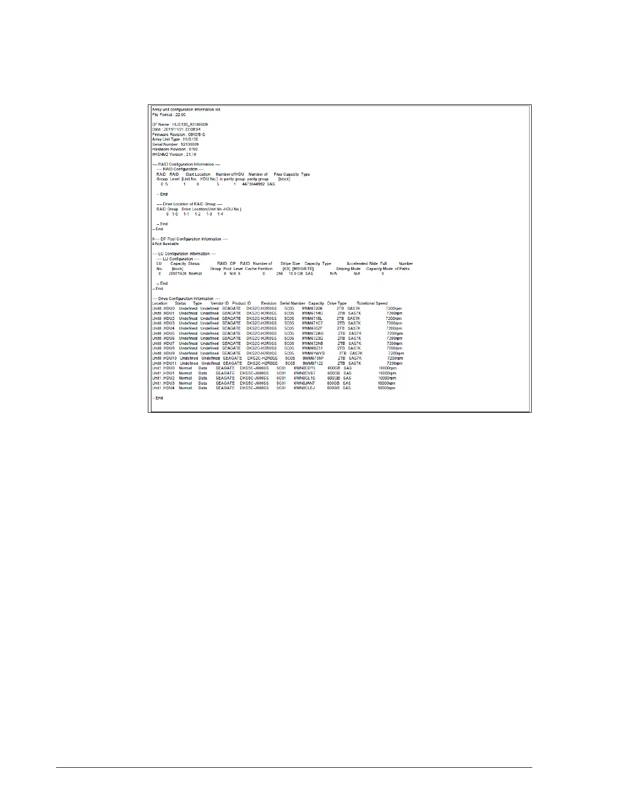 The RAID Group/DP Pool/Volume information is stored as a text file that