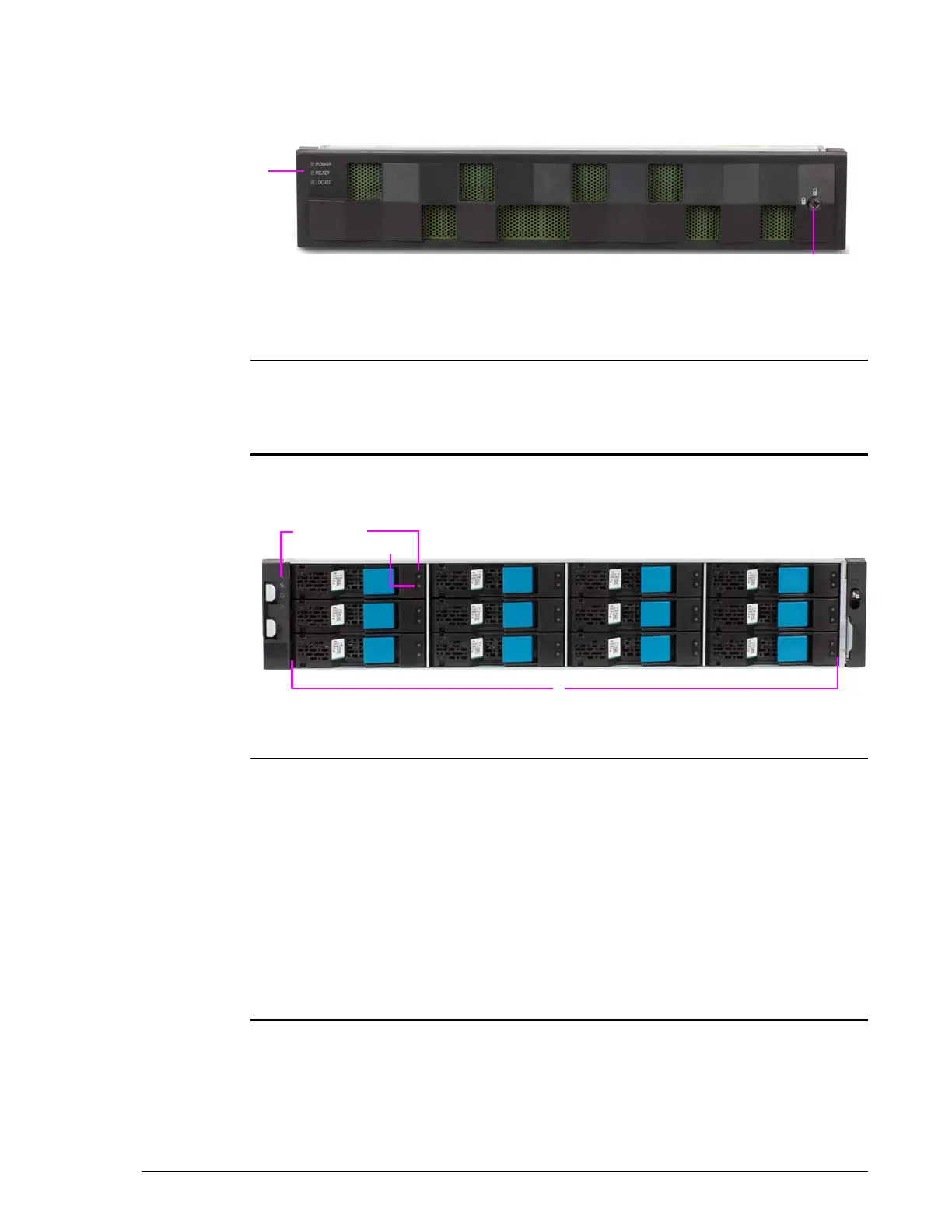 Drive display LED above each drive slot. See Table 2-9 on page 2-31.