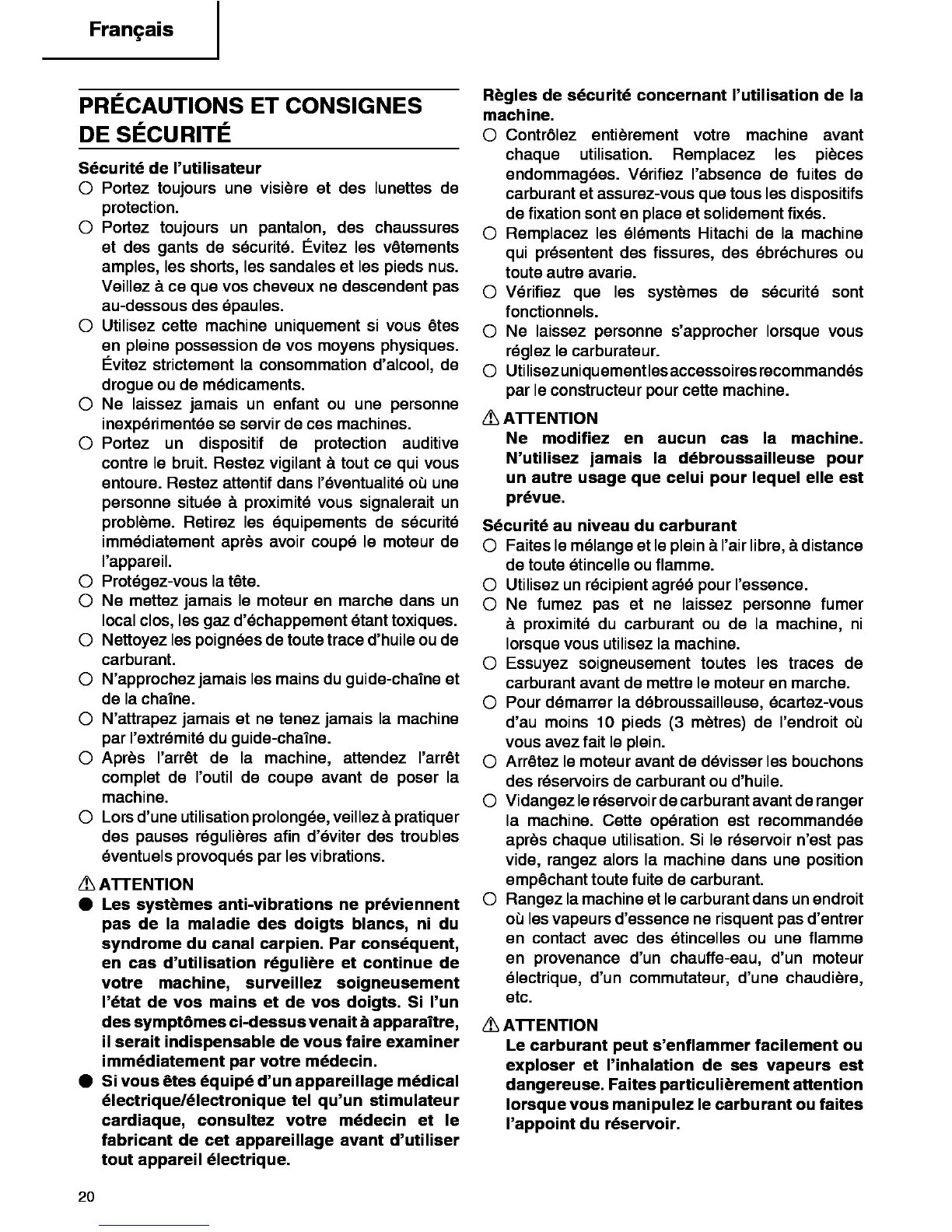 carburant et assurez-vous que tous les dispositifs