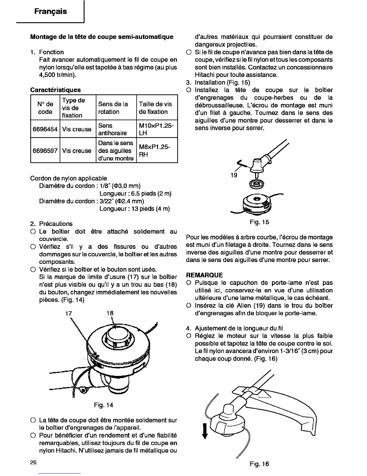 nylon Hitachi. N'utilisez jamais de fil mOtallique ou