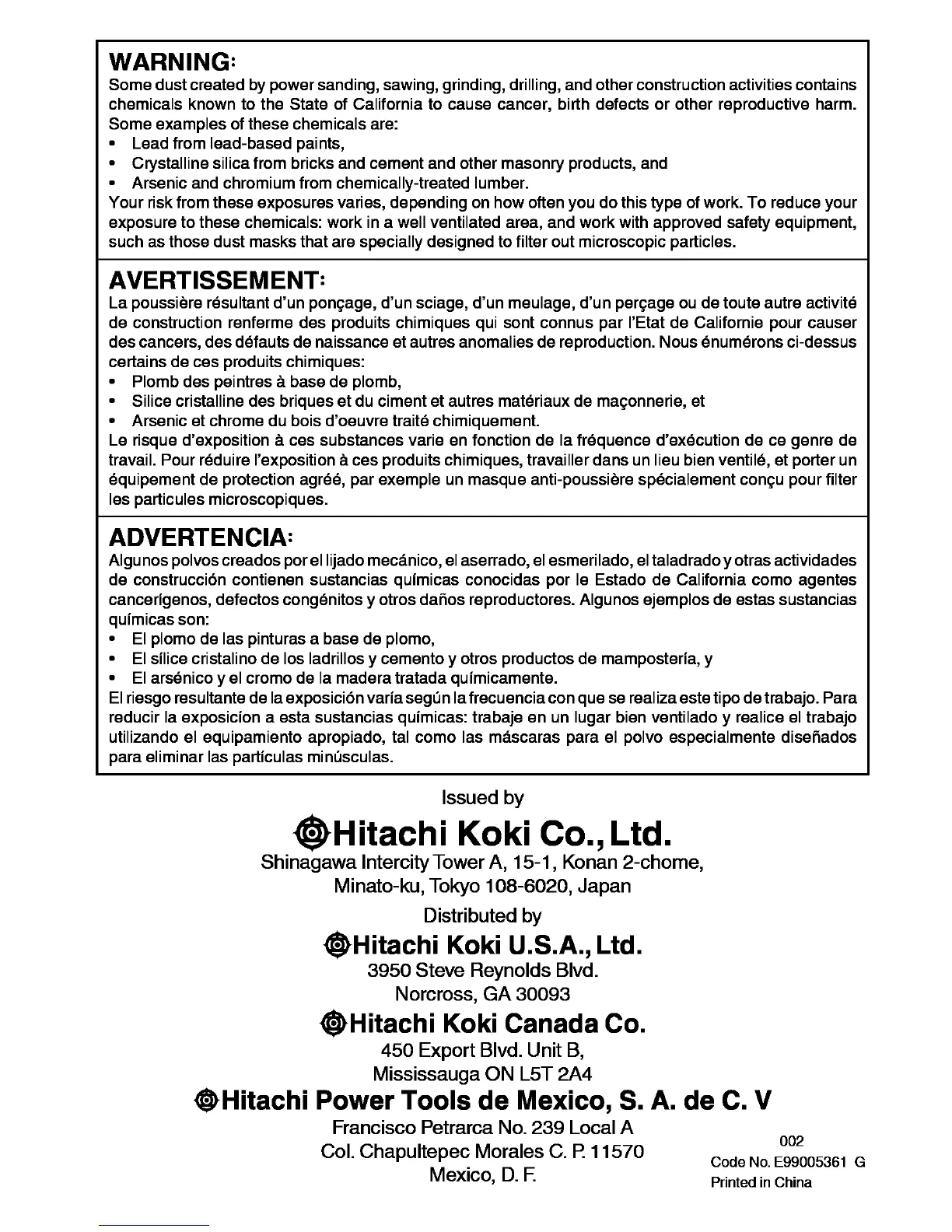 Code No. E99005361 G