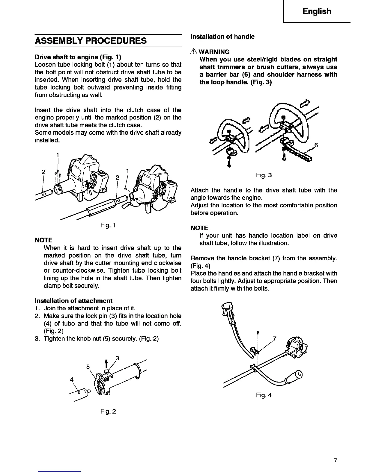 3. Tighten the knob nut(5) securely. (Fig. 2)