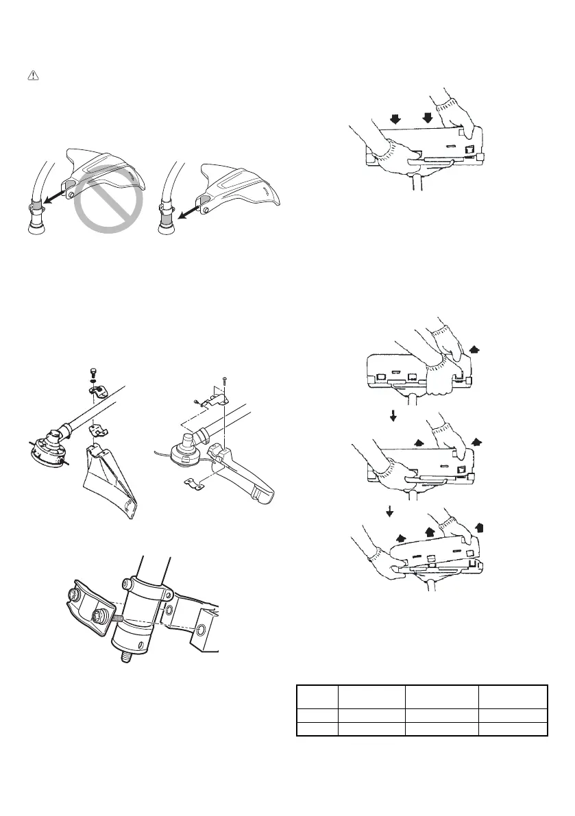 When using a trimmer head with two piece type blade guard, attach