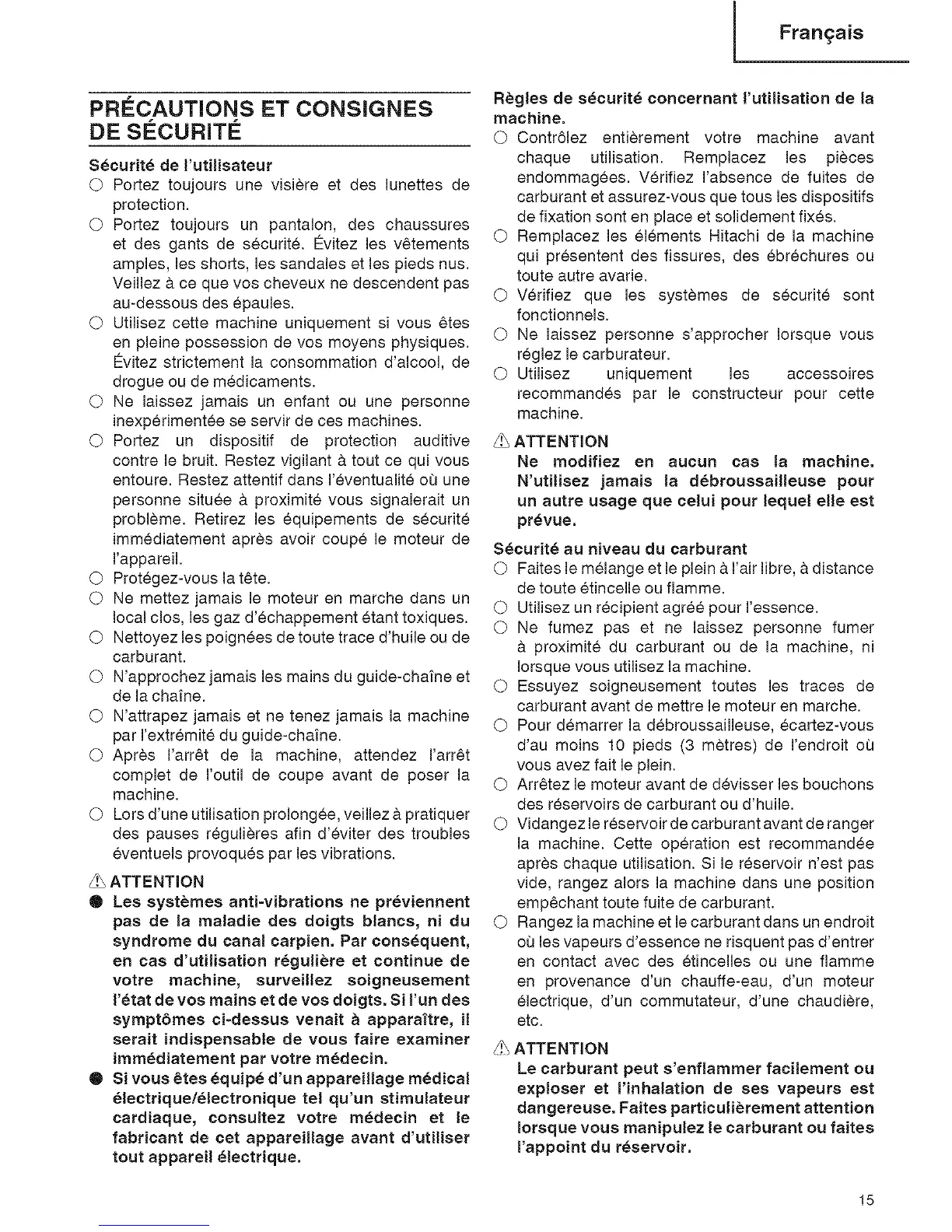carburant et assurez-vous que tousles dispositifs