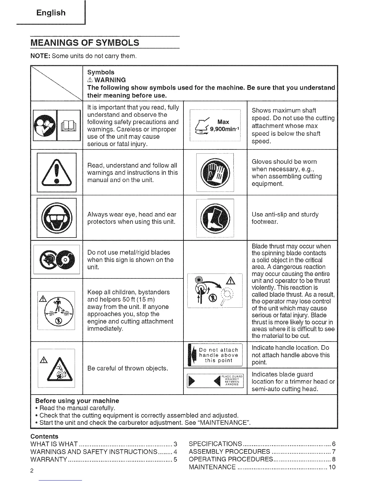 The following show symbols used for the machine, Be sure that you understand