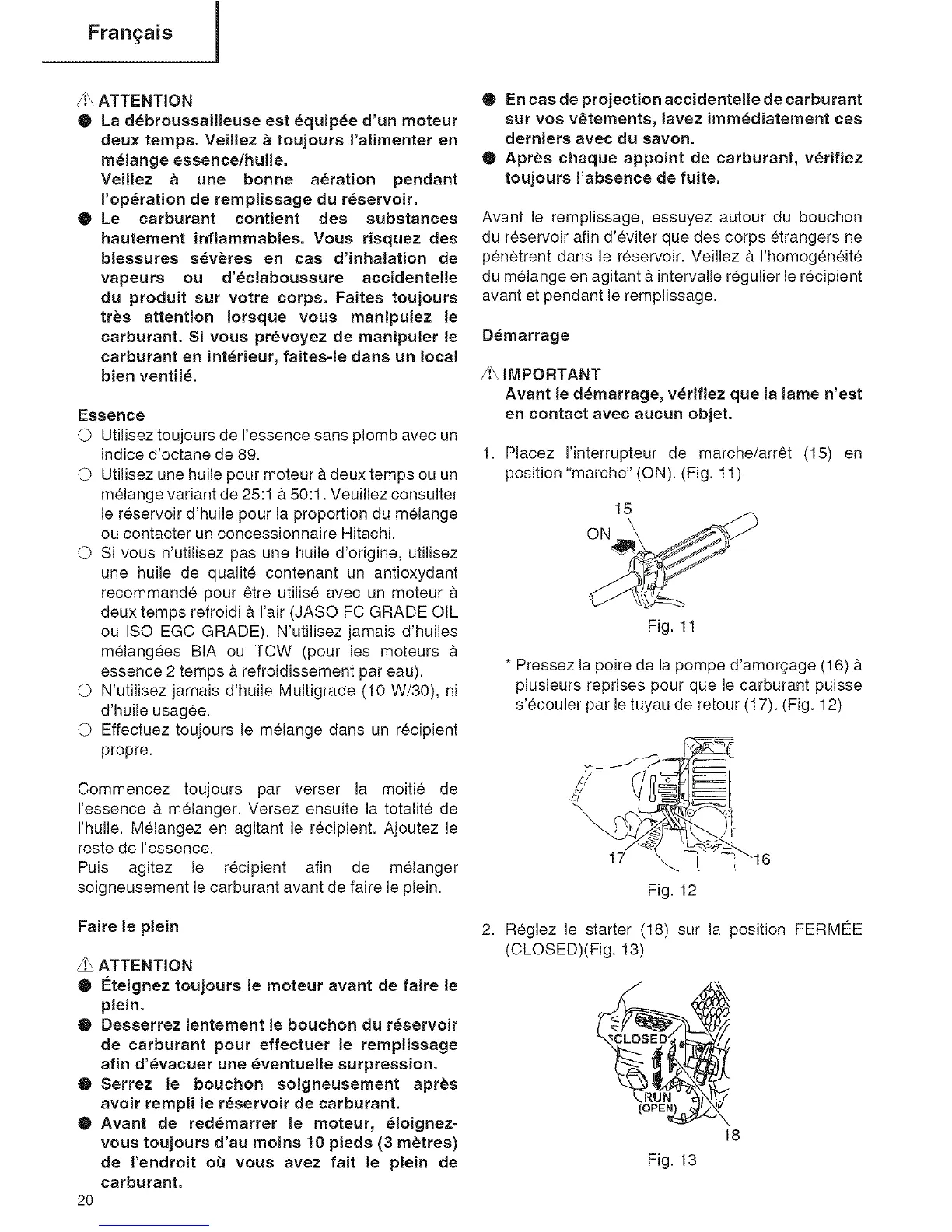 Reglez le starter (18) sur la position FERMI_E