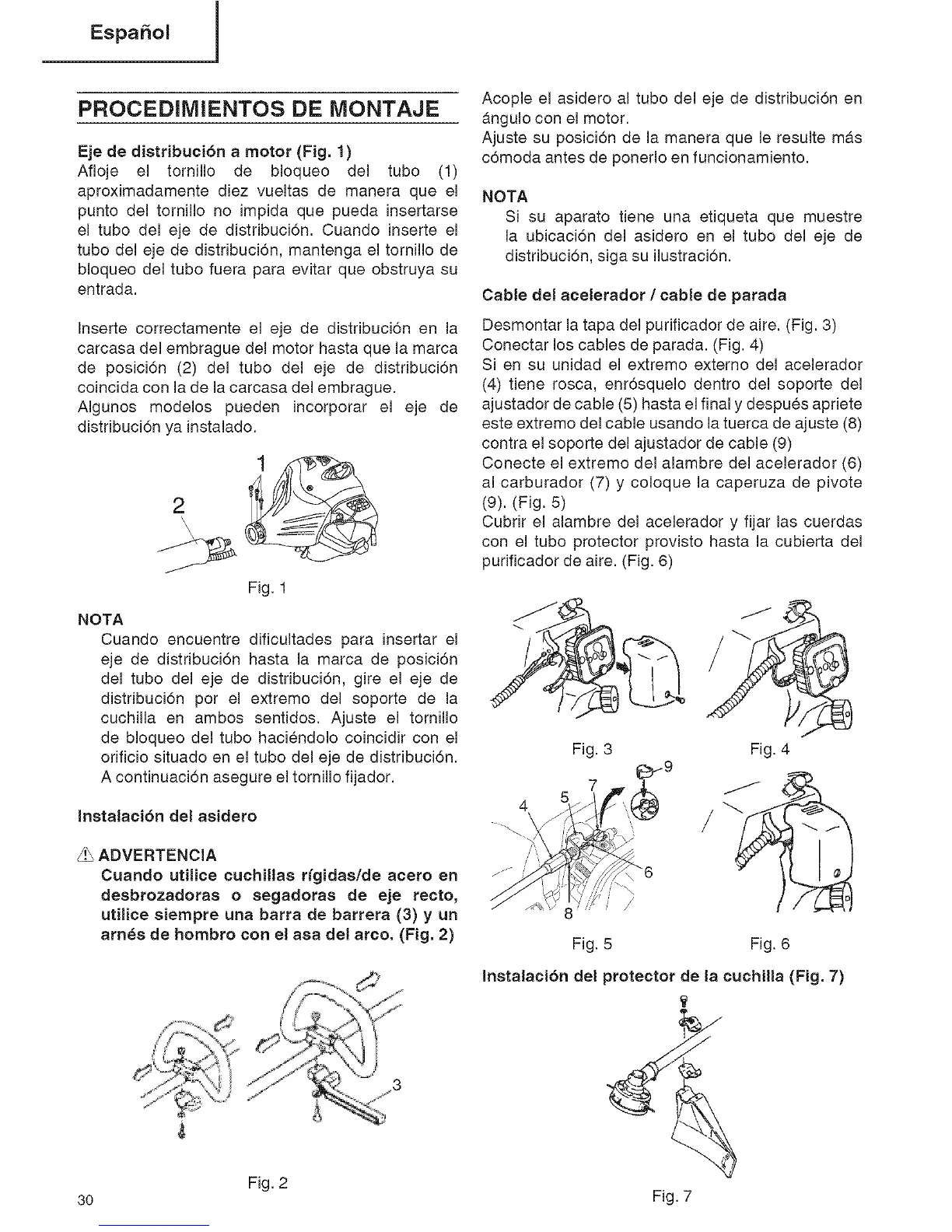 Instalaci6n del protector de la cuchilla (Fig. 7)