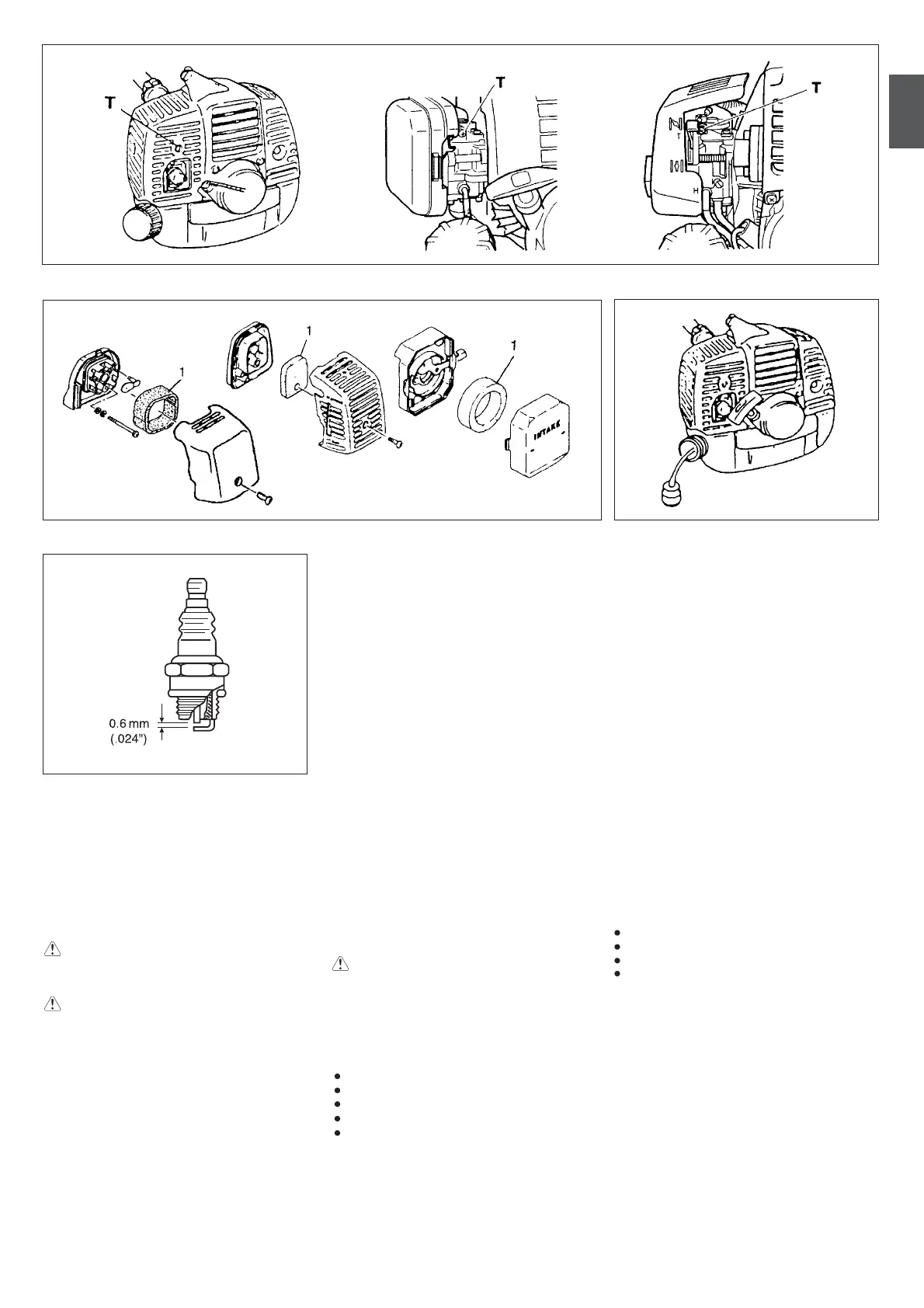 T = Idle speed adjustment screw.