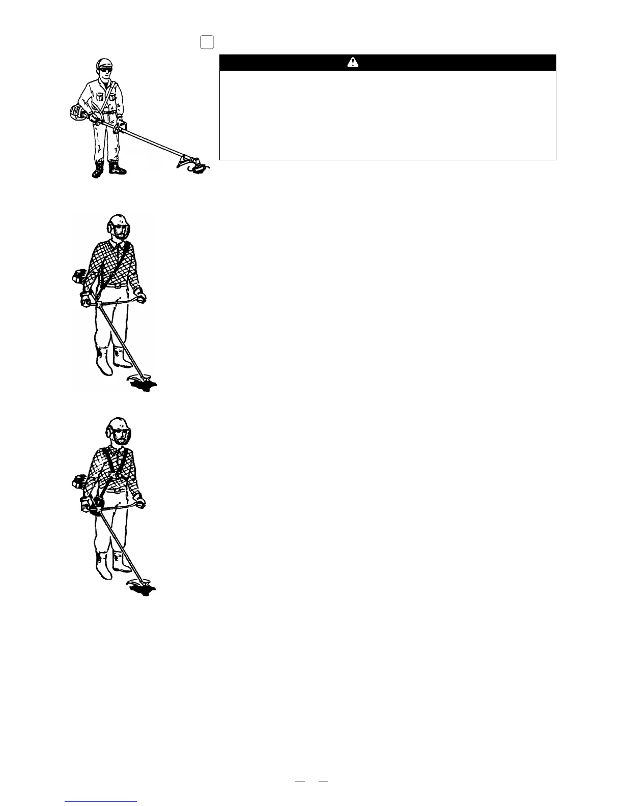 1. The operator must be wearing the shoulder harness attached to the Trimmer/Brushcutter,