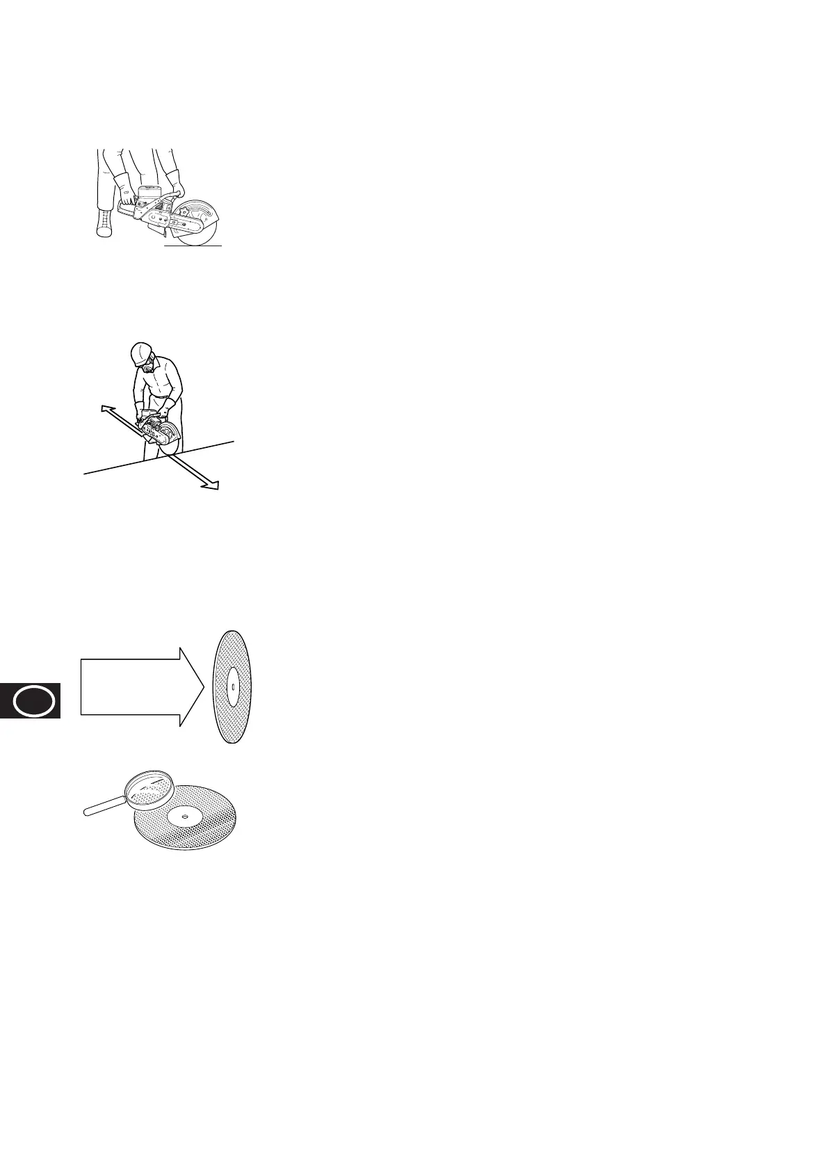 geen zijdelingse druk op de schijf uit. Houd de steenzaagmachine niet