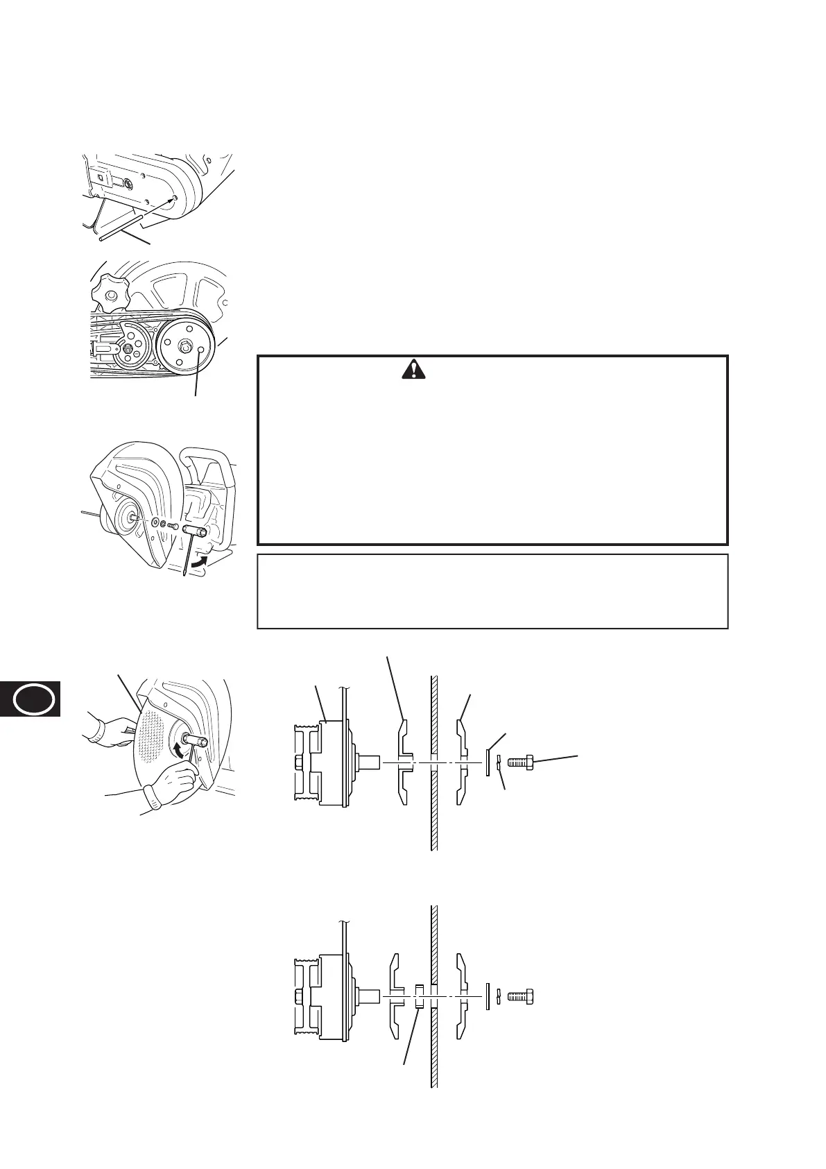 Draai de aandrijfas tot de opening in de grote riemschijf en de staaf uitgelijnd