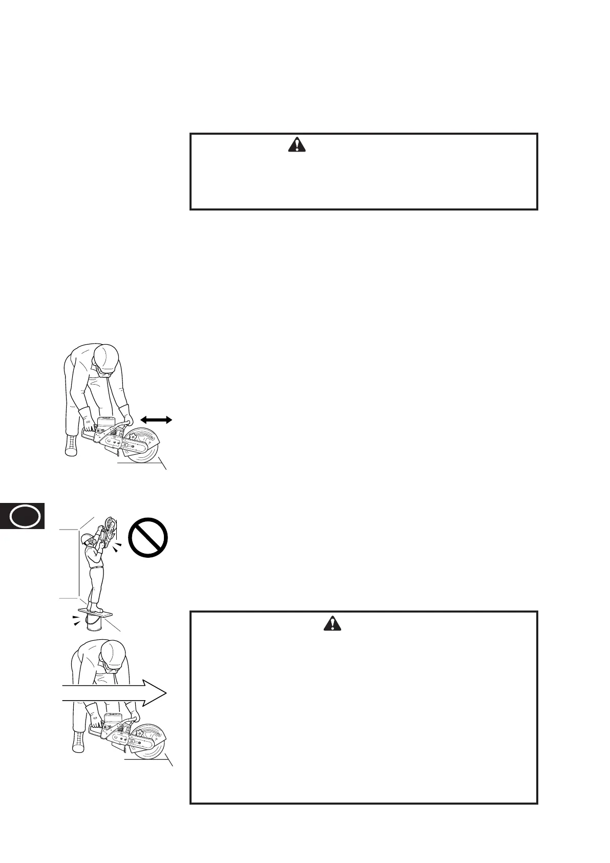 z Breng de steenzaagmachine niet hoger dan borsthoogte, omdat de