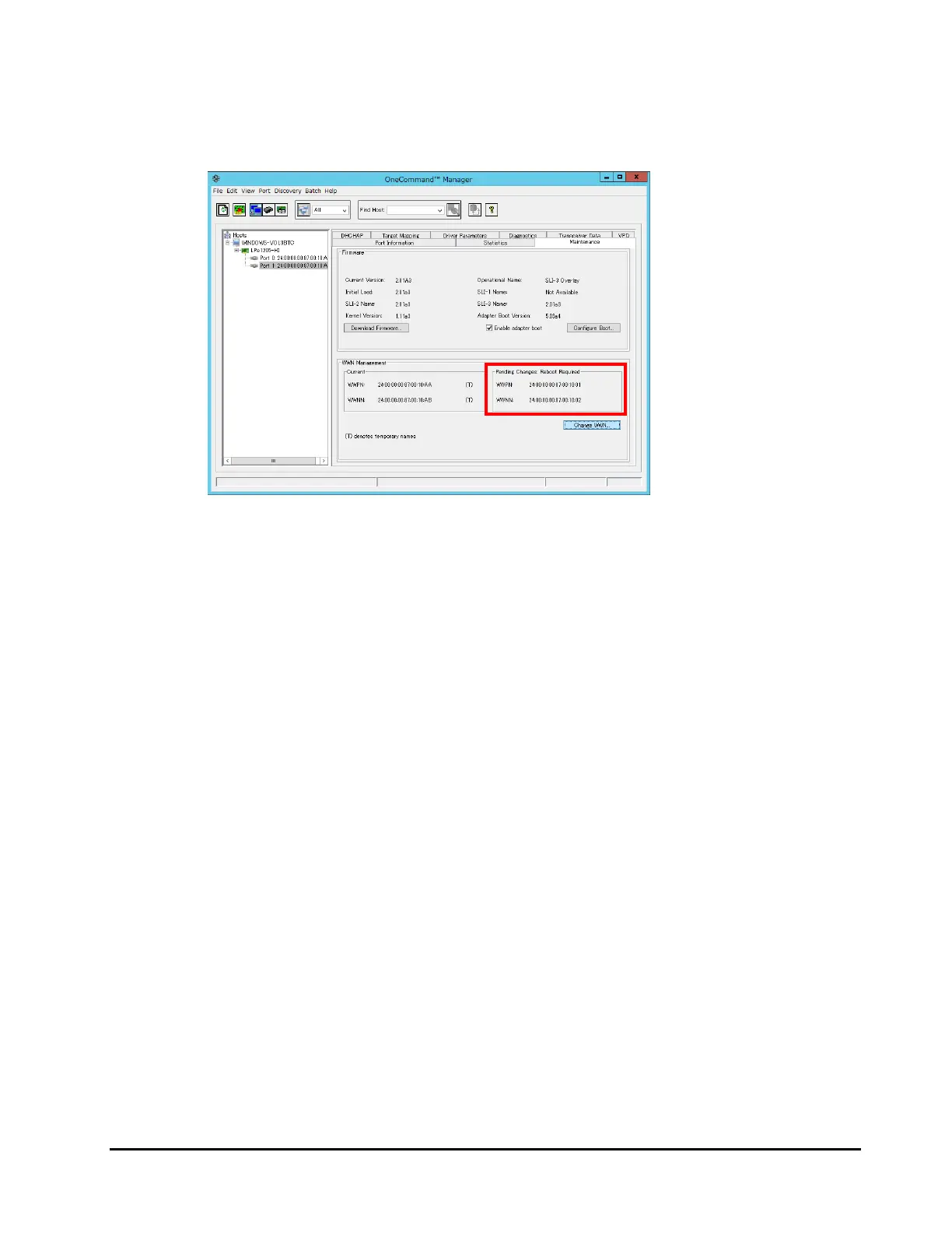 6. Check that the changed WWN is displayed in "Pending Changes: Reboot Required" and reboot the system.