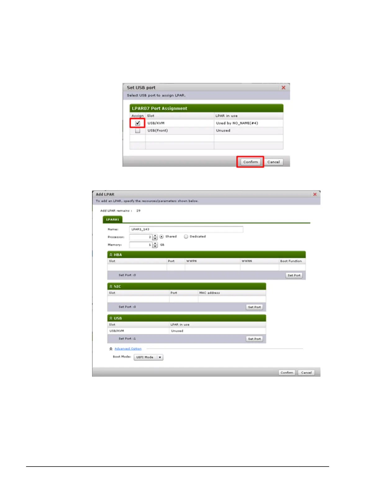 10. On Add LPAR dialog box, click Set Port