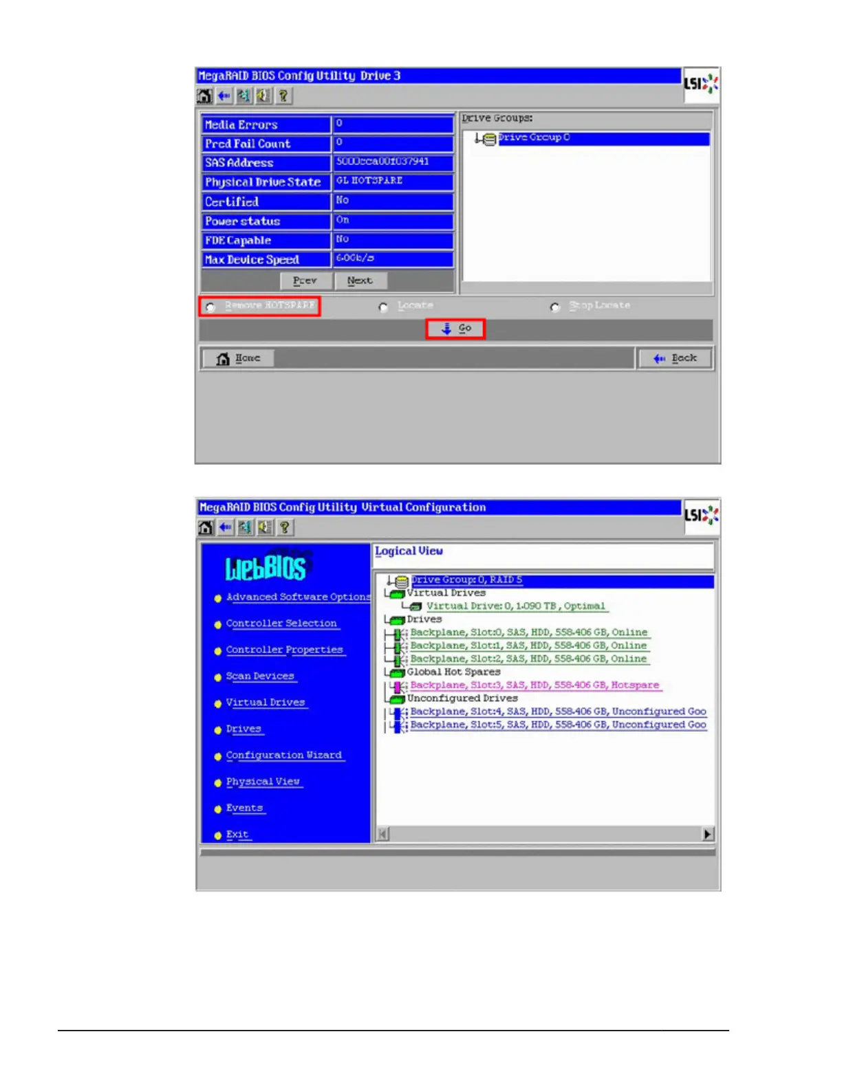 MegaRAID WebBIOS for storage expansion blades
