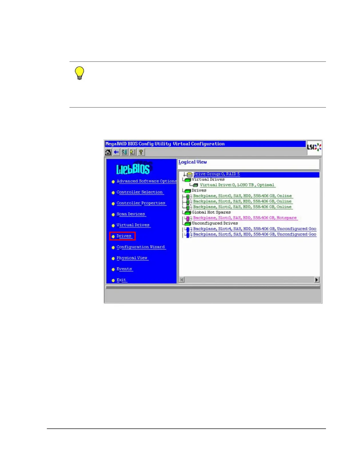 MegaRAID WebBIOS for storage expansion blades