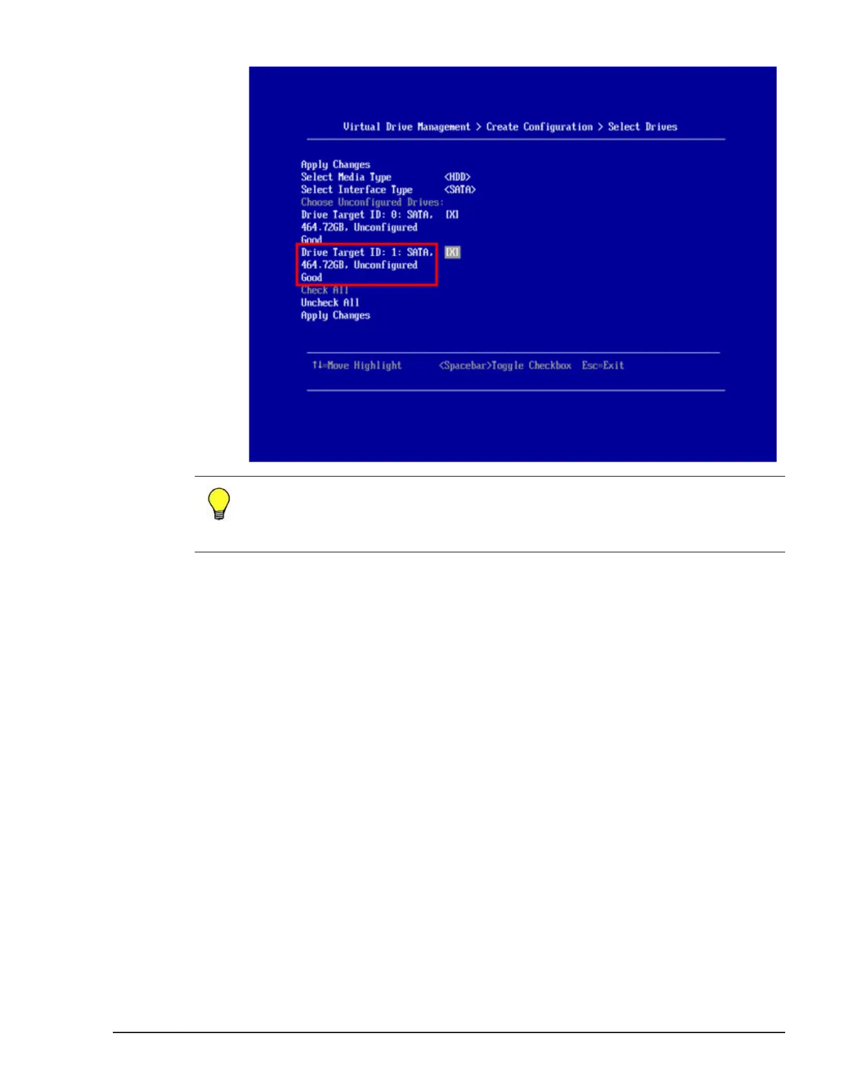 8. Select drives required for RAID 0 or a single drive configuration. Then,