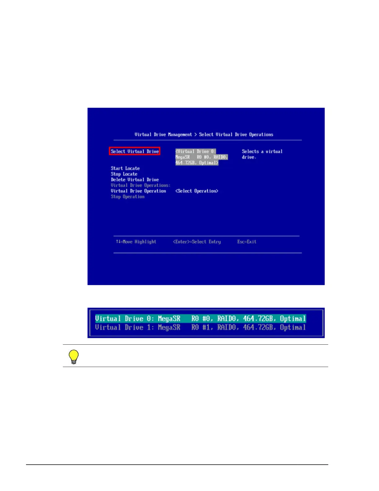 3. Select Virtual Drive Operations window appears. Select Select Virtual