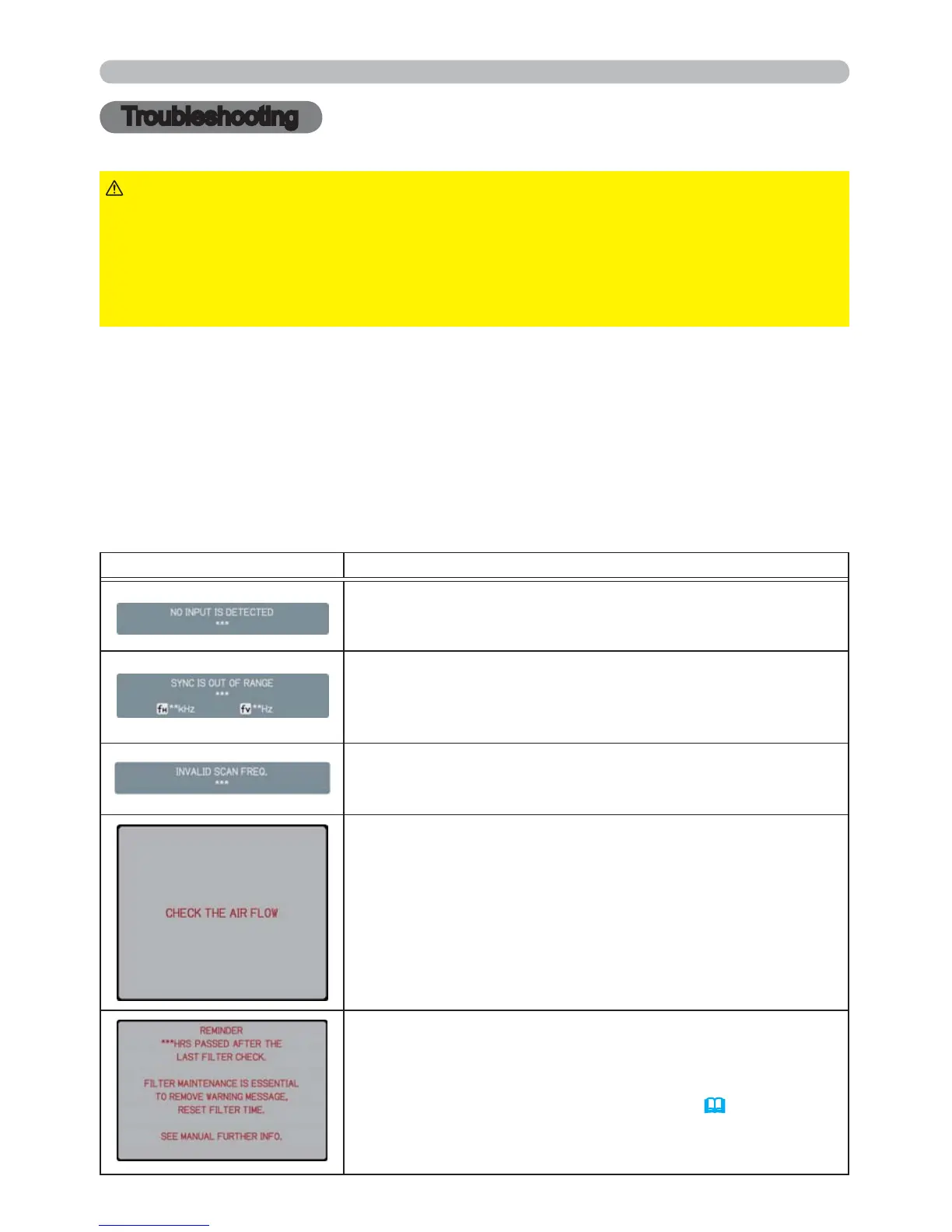 2WKHUZLVHLIDSUREOHPRFFXUVZLWKWKHSURMHFWRUWKHIROORZLQJFKHFNVDQG