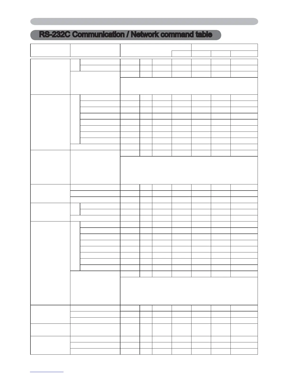RS-232C Communication / Network command table