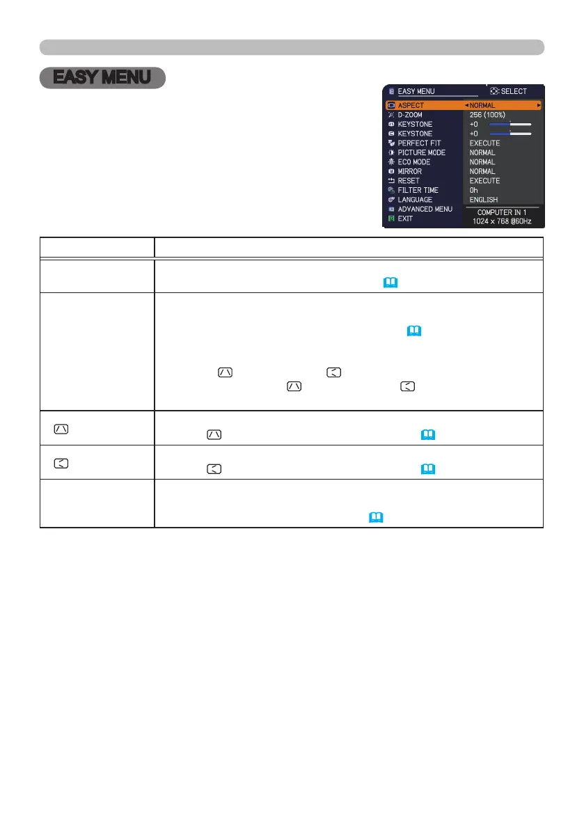 Hitachi CP-A300N - EASY MENU; Easy Menu Items