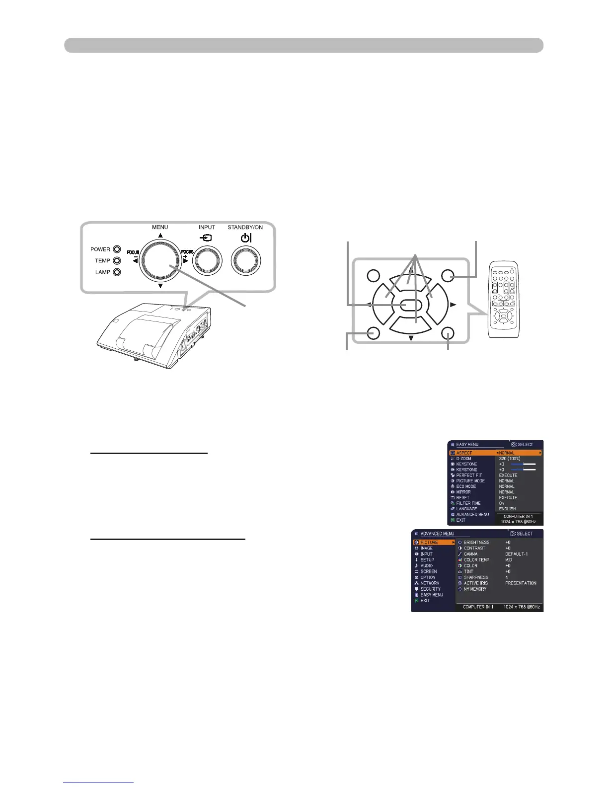 Each of these menus is operated using the same methods. While the projector