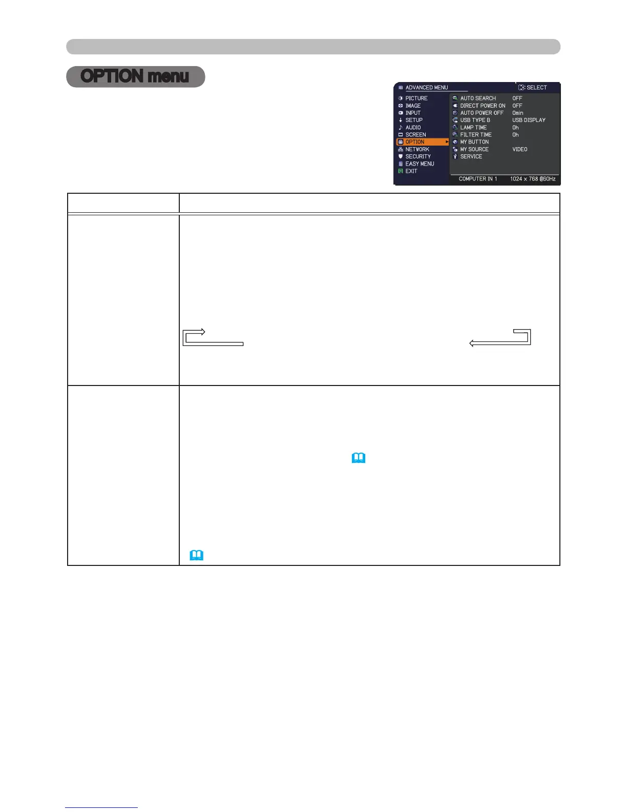 Using the ▲/▼ buttons turns on/off the DIRECT POWER ON