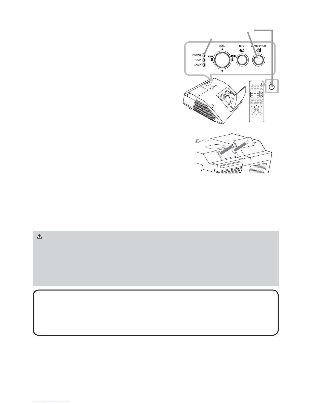 Do not turn the projector on for about 10 minutes or more after turning it off.