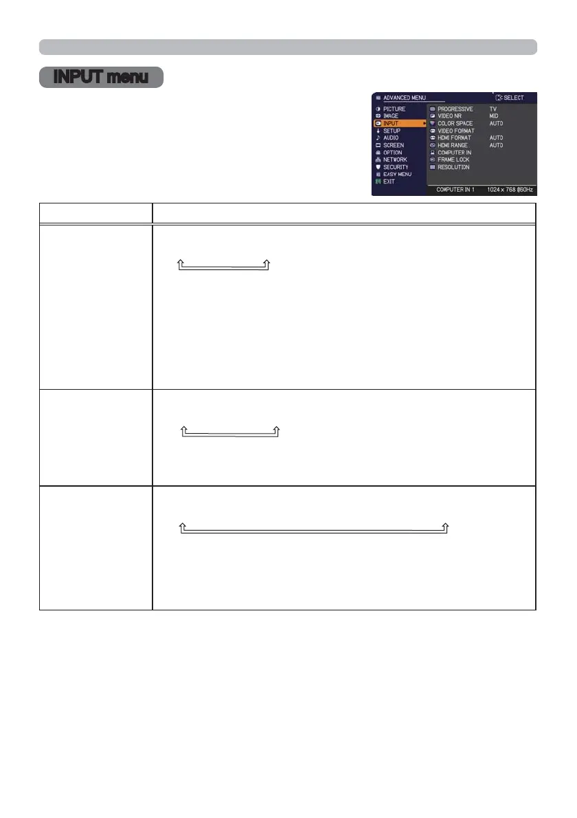 INPUT menu