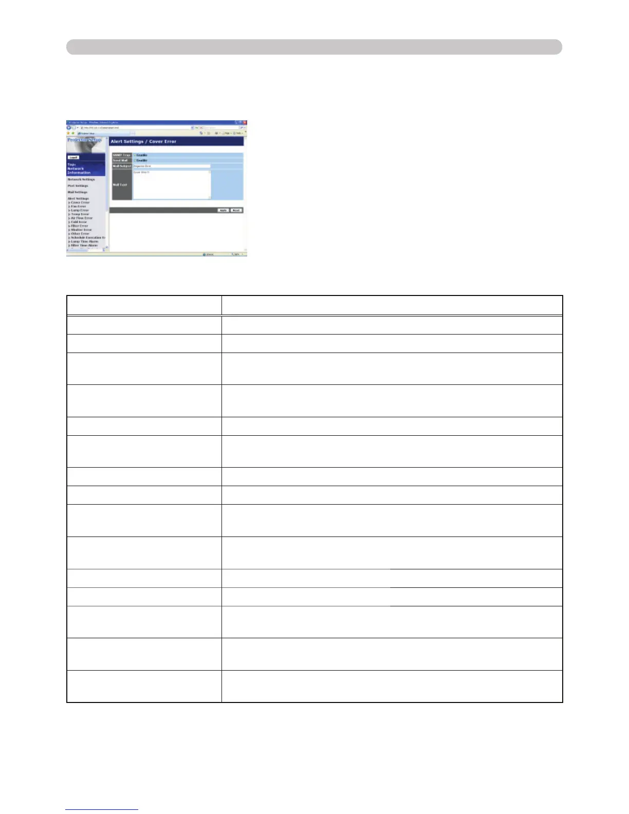 3.1 Confi guring and controlling the projector via a web browser (continued)