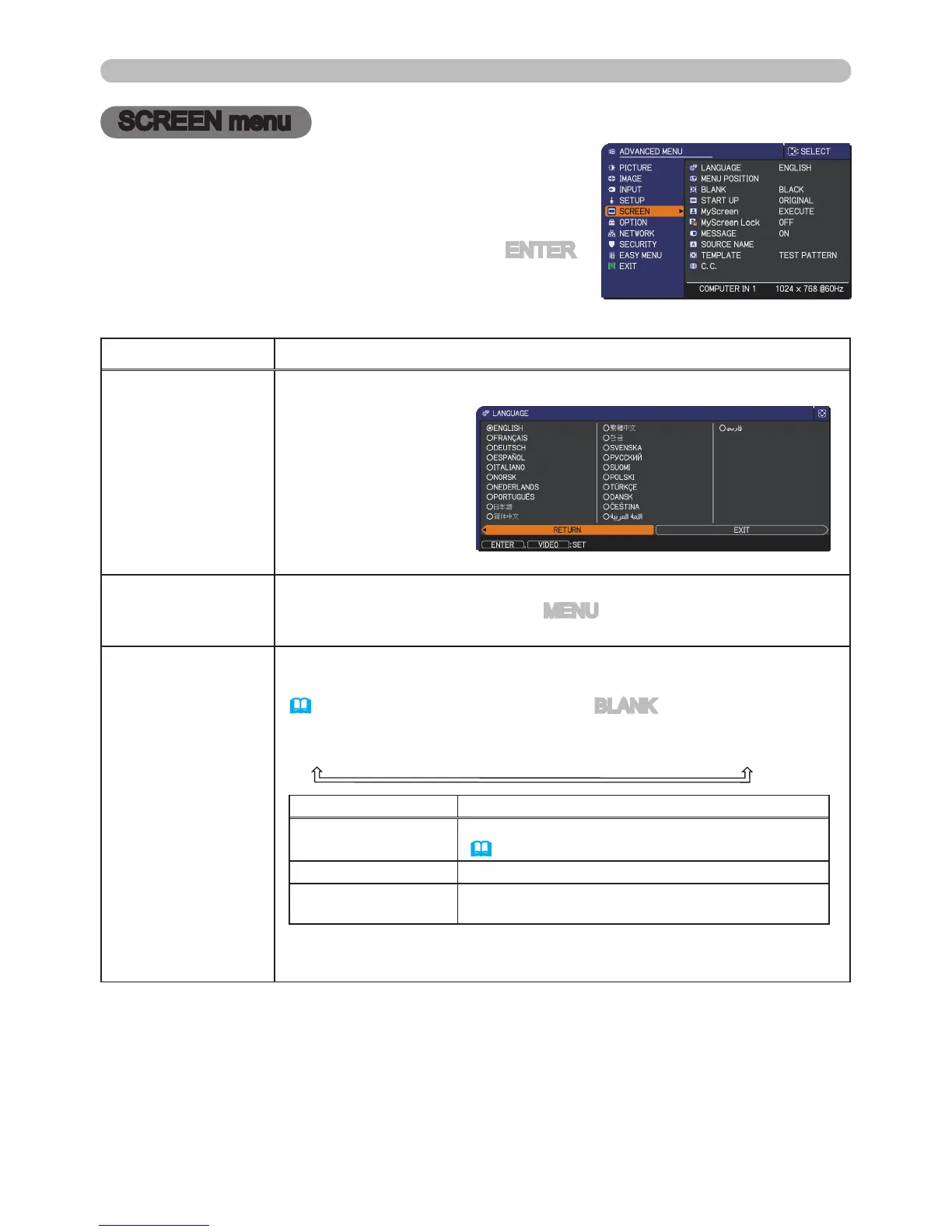 Using the ▲/▼ buttons switches the mode for the blank screen.