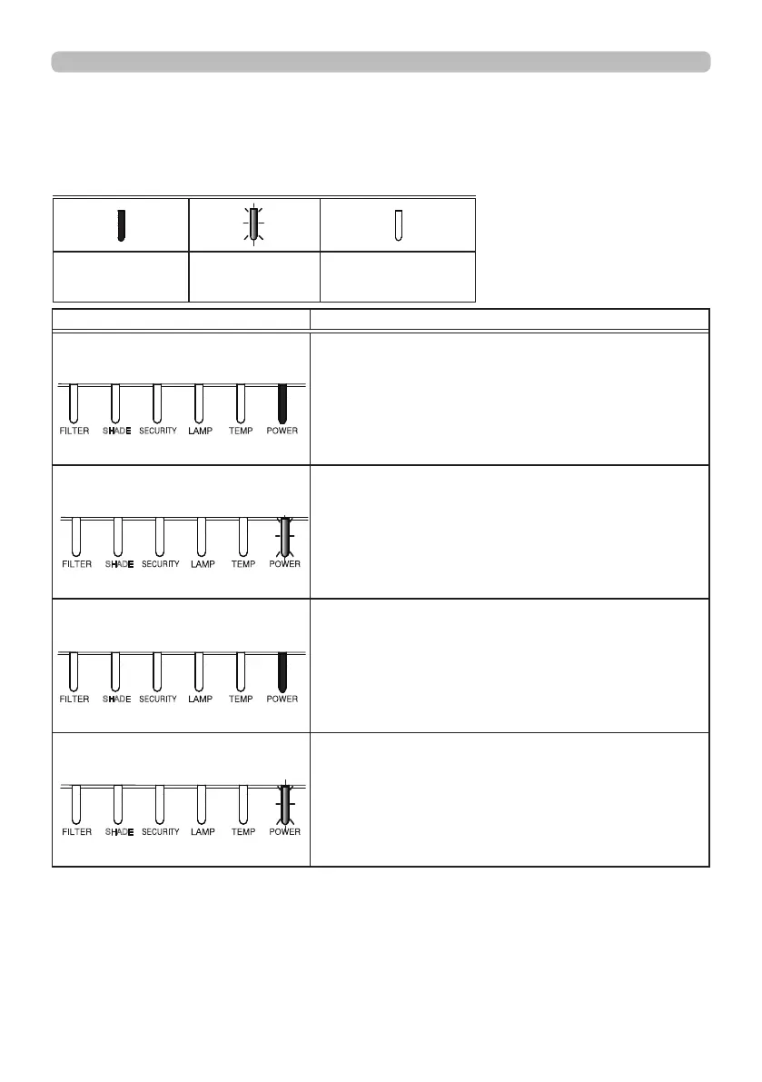 Hitachi CP-WU8600 - Indicator Lamp Status
