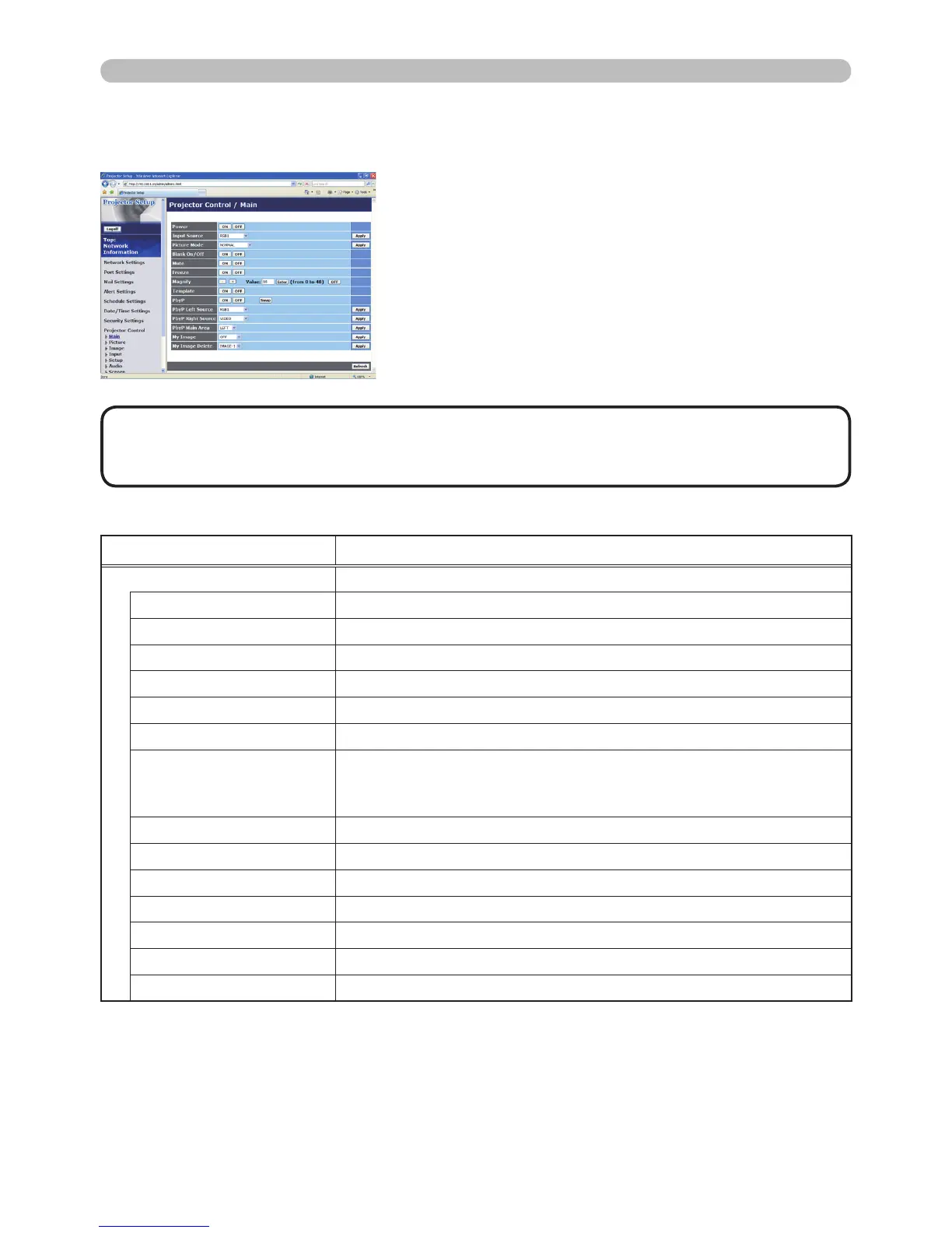 3.1 Conguring and controlling the projector via a web browser (continued)